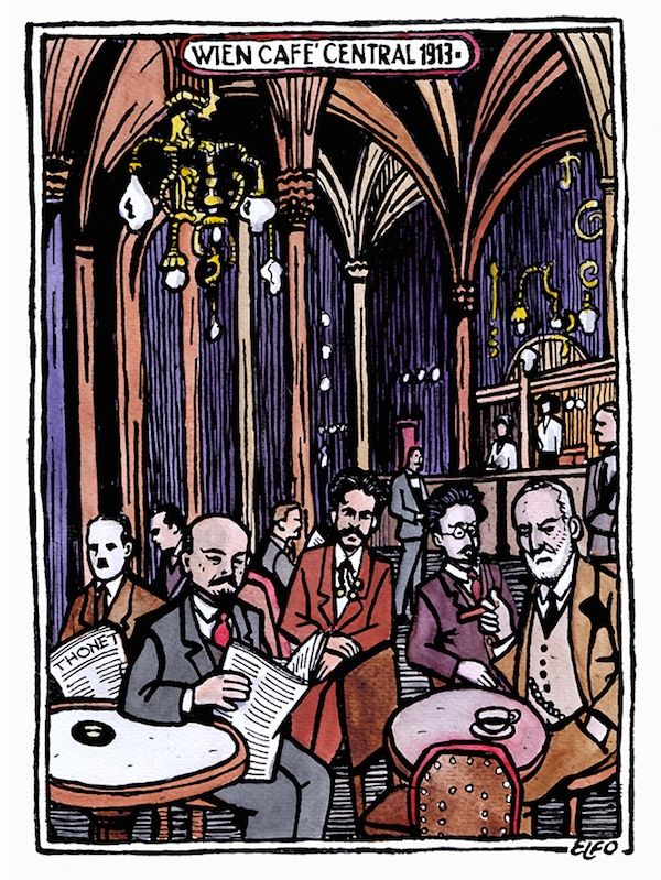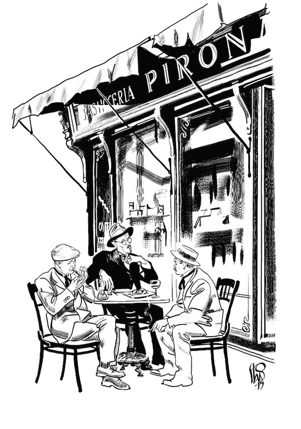 Among them Milton Glaser, Ugo La Pietra, Alicia Baladan, Elf, Paul Bacilieri, Beppe Giacobbe, Jose Munoz and Olimpia Zagnoli. The artists have created images inspired by those places and the characters that used to attend them: from the Bar El Floridita in Cuba with Hemingway, to the iconic Bar Jamaica of Brera in the heart of Milan, from the Café de Flore in Paris to the Café Central in Vienna, where you could easily meet Sigmund Freud.