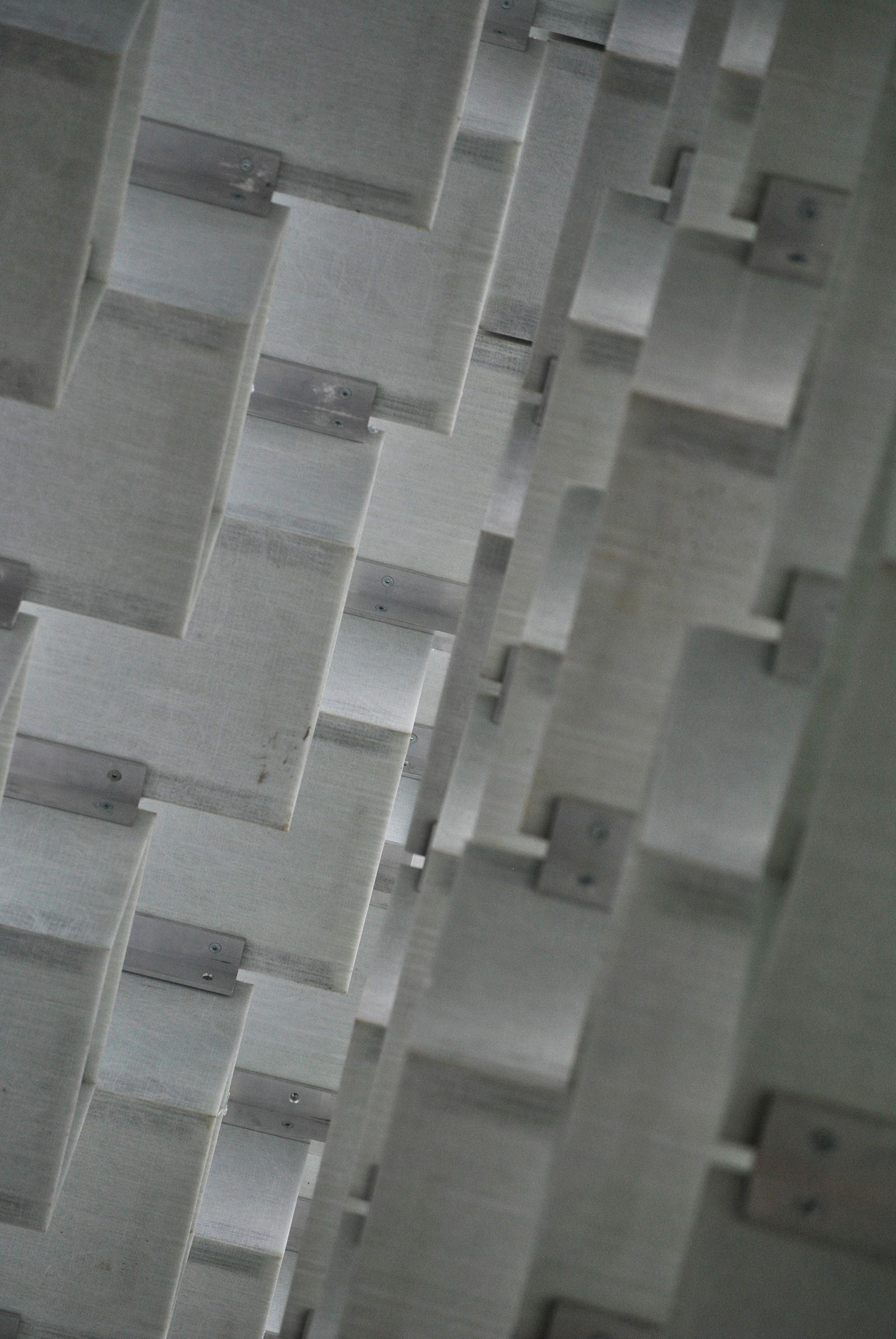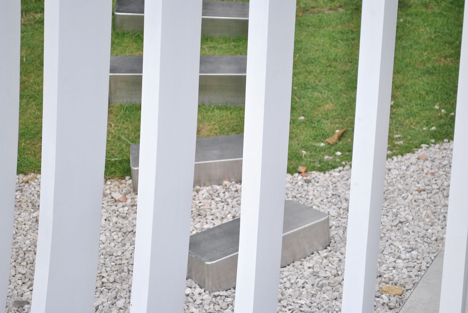 Londoner architect Asif Khan's Summer House is a bit reminding of a temple. Made out of more than a hundred wooden bars painted white, this small pavilion is a completely open undulating structure, with stones to emphasise the entrance as steps and a metal table in the centre that reflects light at sunset, providing a suggestive show.