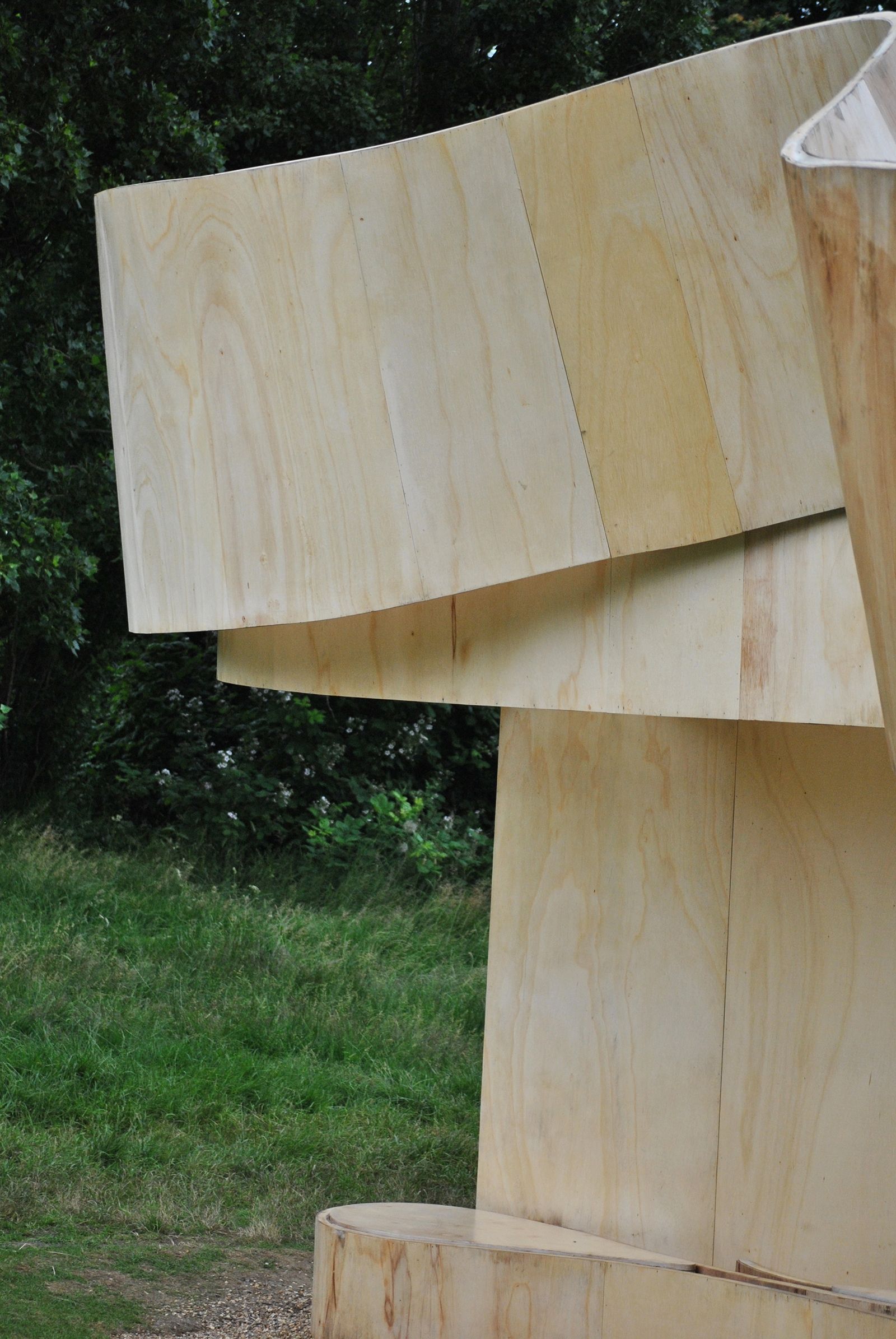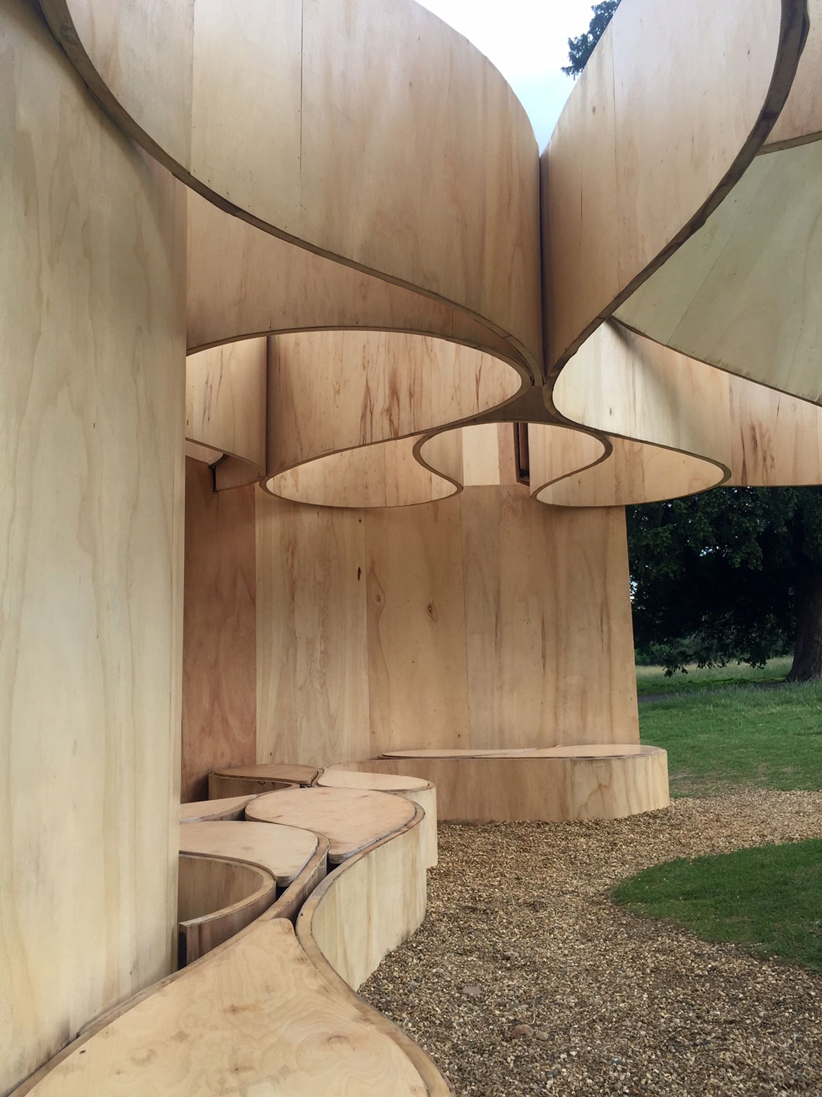 Based on the plant of a IIXX century building – now demolished – designed by William Kent, that turning 360 degrees from the top of a hill offered a unique view of the park, Barkow Leibinger’s Summer House is one of the most captivating, formed by wavy wood bands which are twisted one over the other and intersect in a surprising game on all sides.