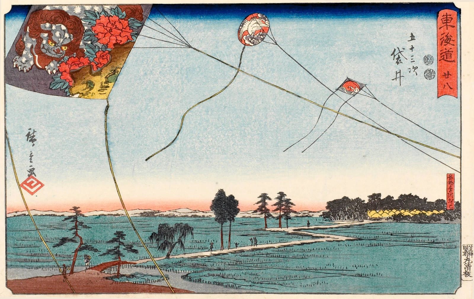 So what has the exhibition in store for use? Yes, the most anticipated piece – and probably the first that comes to mind when thinking of Japanese art in general –, Hokusai's The Great Wave off Kanagawa will be there. But the foaming wave with Mount Fuji in the background will be just one of the 200 prints we'll have the chance to admire. There'll also be Hiroshige's amazing group scenes – like the lively street of fabric shops depicted in Narumi – and Utamaro's courtesans and young fashionable women – see, Portrait of Beauty –, along with other scenic views by Hokusai, including the famous Fine Wind, Clear Morning.