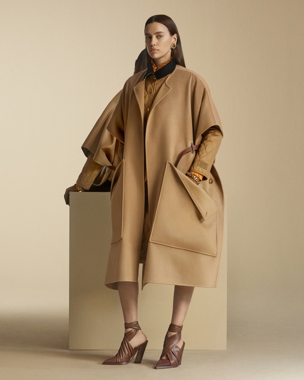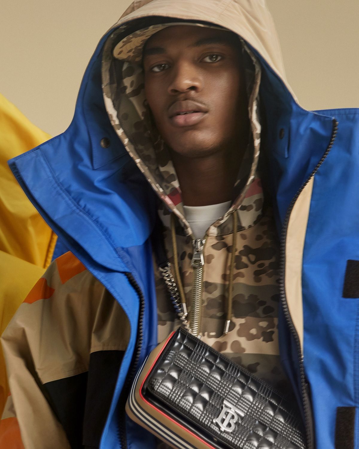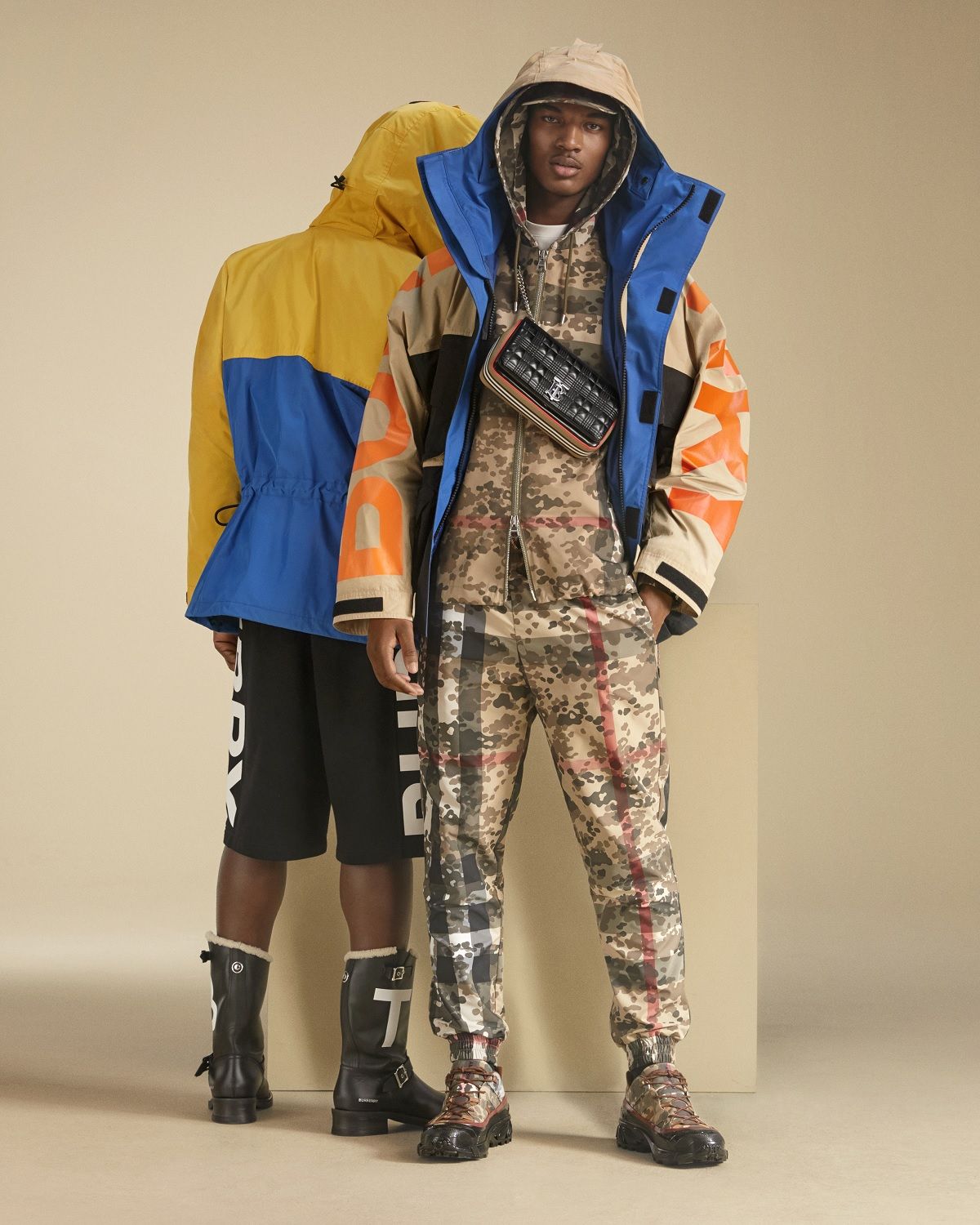 Like the campaign, the pre-collection garments have two souls, hovering between past and present. Tisci continues to develop its vision of the British brand by revisiting the archival models with always new twists. The result is silhouettes and codes that evolve, acquiring proportions and new combinations such as the iconic check superimposed on camouflage and quilting made more vibrant by bold colours. In the feminine version, the trench coat, always an iconic piece of Burberry, is made of jersey, made special by fringes and graffiti prints. It brings everything from quilted skirts to blazers, from dresses to jumpsuits, from silk shirt to tailored trousers. Even for the man the item retains its versatile soul and remains a must-have to match with suits, shirts, cargo shorts or hoodies. Completing the looks sported by Shayk and Nelson are accessories such as the new TB Bag and Pocket Bag series.