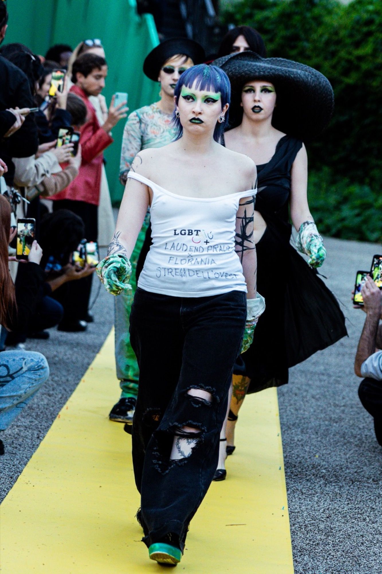 It was a very rich day. It started at 5:30 PM with the talk Milan is a welcoming city? in which Daniele Biaggi, author of the QUiD podcast (StorieLibere), and Jonathan Bazzi, writer, discussed in a live episode, trying to highlight the thousand contradictions of the city. At 5:45 PM, the BALLROOM SCENE Talk delved into the key concepts of the ballroom scene in Italy. Vitto Pascale, activist and creator of the GENDERATION project, discussed it with La B. Fujiko and Kenjii Benjii. At 6:45 PM, Pietro Turano and Monica J. Romano talked about the book: There is no going back published by TEA in 2023 by Monica J. Romano, a personal story, of struggle and politics. Pietro Turano, actor and activist, interviewed the newly elected candidate for the European elections for the PD. At 8:00 PM everything stopped to make room for the fashion show titled: Dorothy's Friends inspired by The Wizard of Oz. BE NINA, FANTABODY, FLORANIA, GIORGIA ANDREAZZA, MARCELLO PIPITONE, SIMON CRACKER, SIRAINER, VITELLI were called upon to reinterpret one of the characters from the famous book. The theme derives from the phrase "Are you a friend of Dorothy?" used to identify oneself within the queer community in America's clubs at the end of the Second World War. In the 1950s, homosexuality was still punishable by law, and that phrase constituted a coded language accessible only to representatives of the community itself.