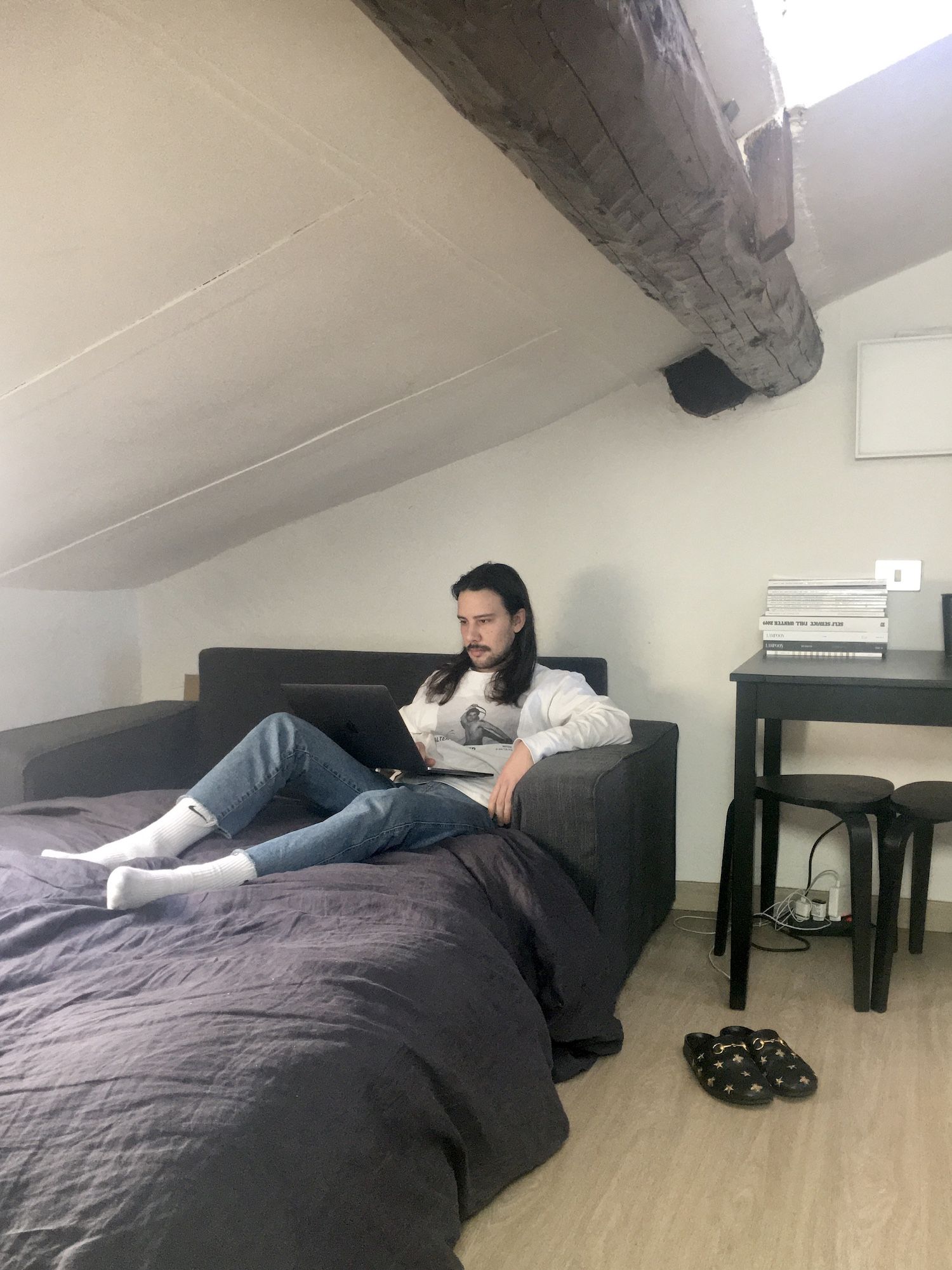 I am honest, I am living this period with great tranquility, I started to devote myself to other passions that I had left behind, and I started to study subjects that I had never faced, such as economics and finance. Living alone and in a studio apartment, it is not easy to pass the time, but the trick is knowing how to be with yourself. The rest comes by itself. Thanks to the quarantine I rediscovered my passion for cooking, I started eating well, always cooking (I used to order out 7 days a week before all this). Films and music are the two things that fill my days the most, I watch about 3/4 films a day. And I listen to good music at full volume while I work on the computer.