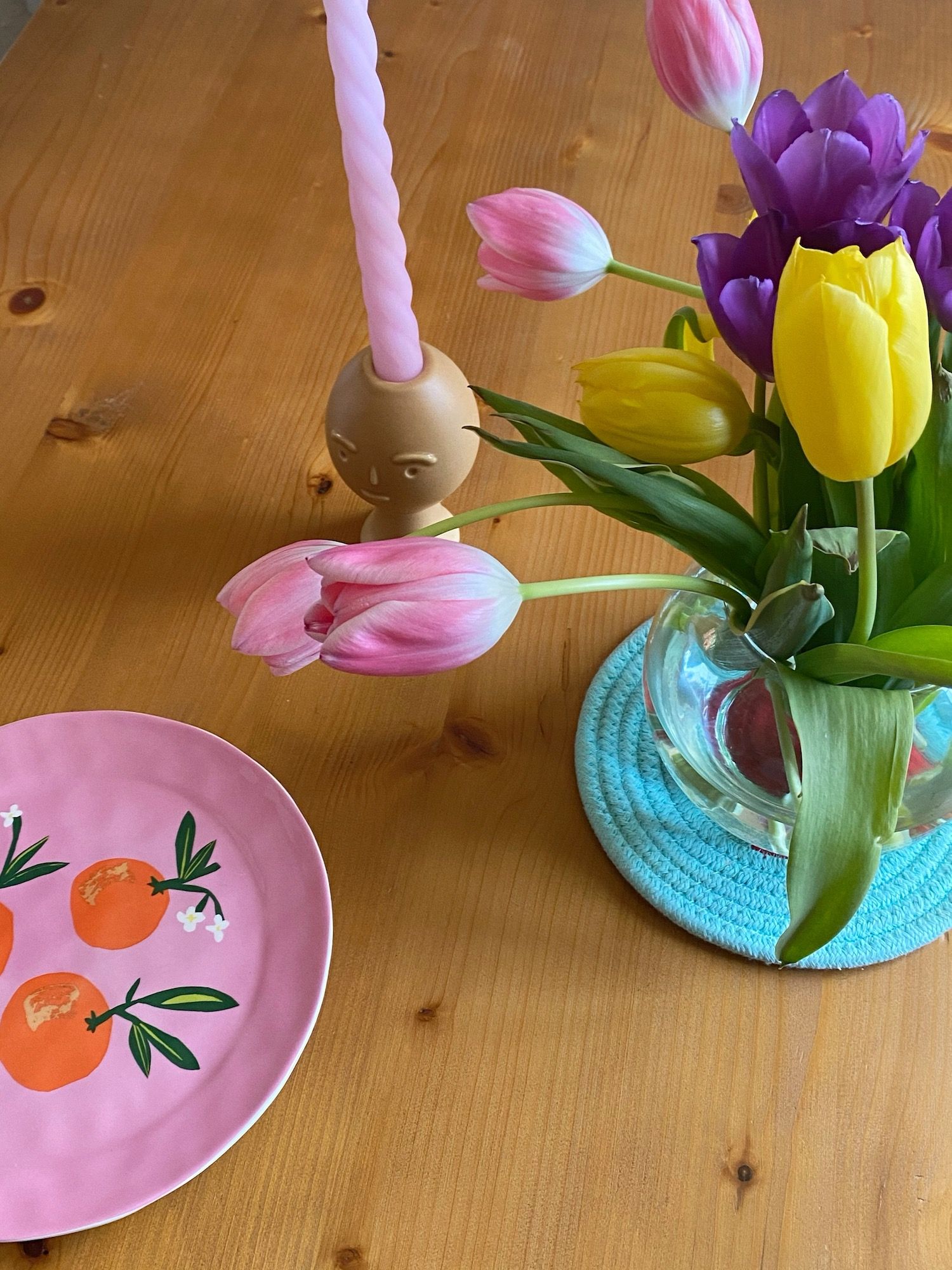 I work from home so I’m used to that part of quarantine. I'm trying to maintain my daily routine of getting up and making a coffee and then starting on my emails. I've been breaking up the day by going for a run when that mid-afternoon tiredness hits. I'm spending my evenings trying new recipes and painting. The majority of my design work is digital so it's been really nice to get away from the screen and create some work for myself. I am in lockdown at my parents' house, which I feel very lucky to be able to do but I fear I won’t be able to get back to my home in Leeds where the majority of my belongings and my boyfriend is.