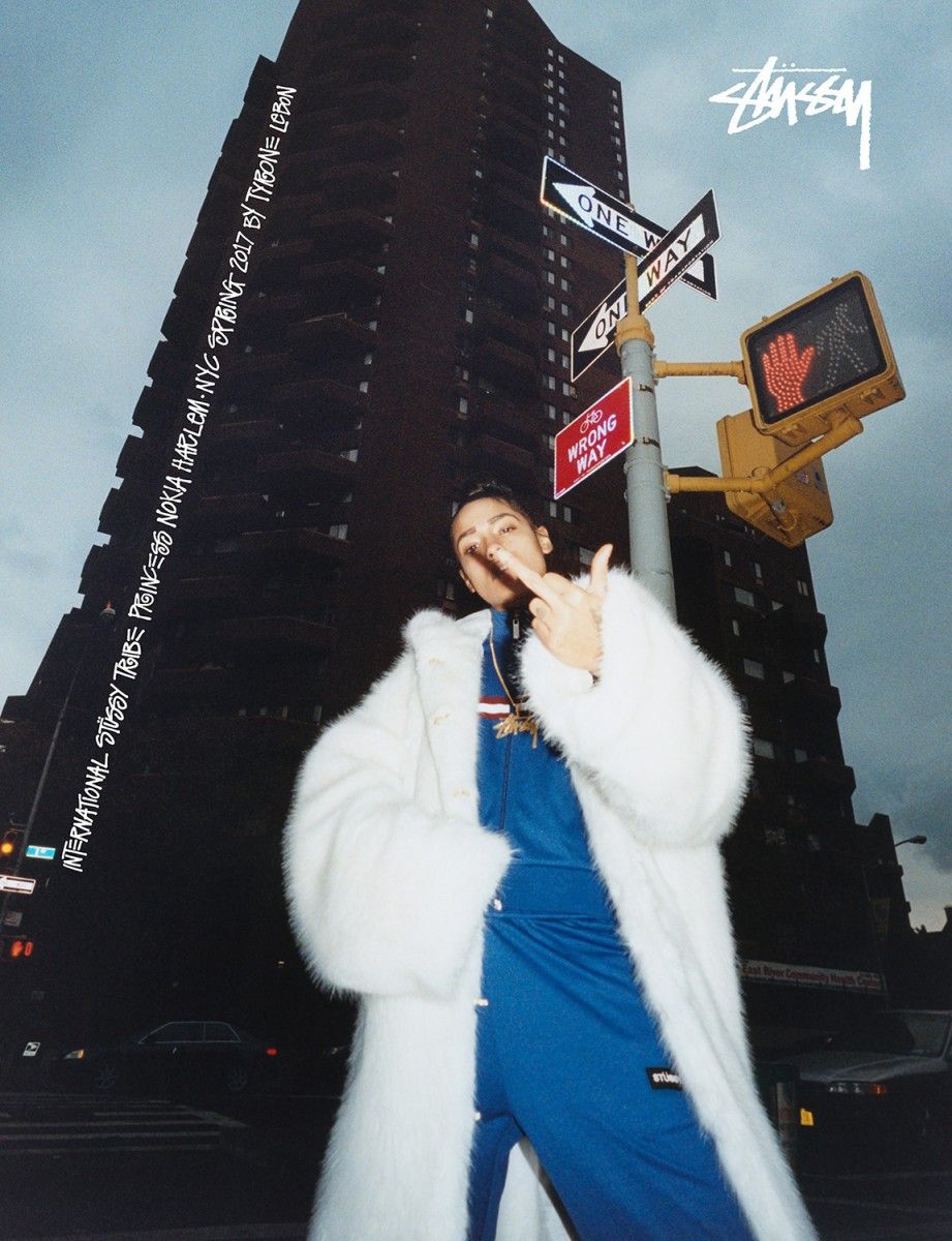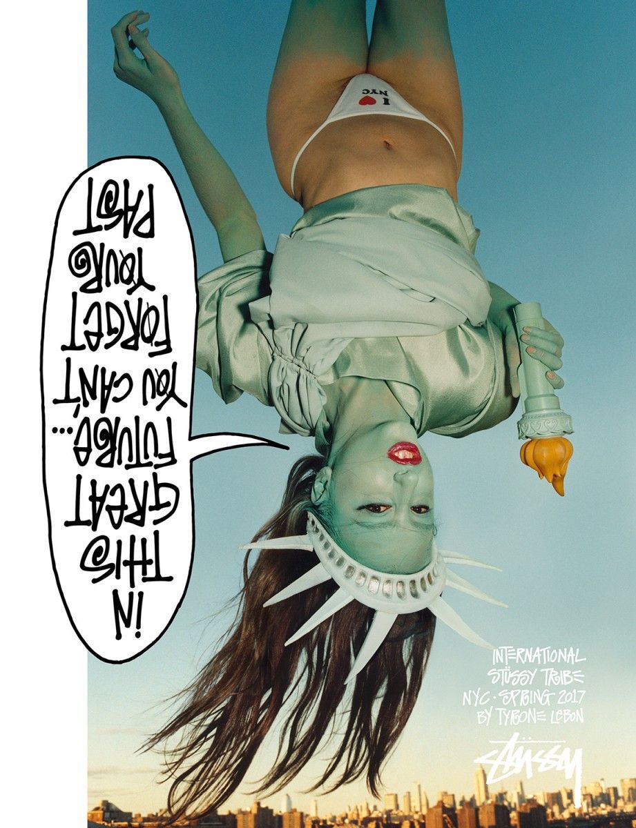 Stüssy loves New York. The streetwear brand returns with a lookbook that pays homage to the Big Apple and its inhabitants. Behind the lens again Tyrone Lebon, who after shot for the label Los Angeles, Tokyo, Kingston and Paris, travels from borough to borough, capturing the life and spirit of New York. With a surreal and at the same time contemporary take mixed with vintage and colorful graphics, he photographs the pieces of the new spring-summer 2017 collection and together some local characters of the metropolis as the musician Princess Nokia in Harlem, the porn star Stoya with King Kong, The Guardian Angels, and the heiress and Paris sister Nicky Hilton Rothschild. Each image is an intimate journey into the soul of New York City and a modern and contemporary frame to observe the new Stüssy's collection will drop in stores and online February 10.