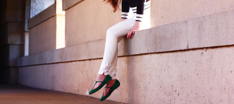 Un bel paio di pantaloni o shorts a vita alta, cardigan o maglioncino leggero, blazer di lino e un paio di ballerine semplici color carne.