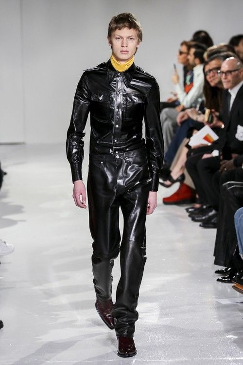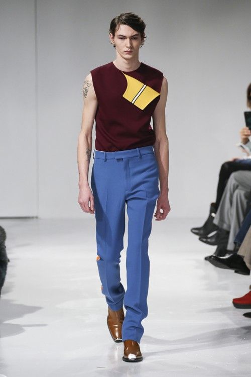 It is along the tune of the colossal "This Is Not America" by David Bowie, which Simons has decided to make his collection run on the catwalk: dresses defined by sharp contrasts and different fabrics - from PVC to denim to leather lucid - where oversize and skinny come together in a wonderful cosmopolitan mix. As for his first line with Calvin Klein, America is the center of Raf Simons vision: lit yellow, blue and red combined with various shades of white and neutral nuanche; paying homage to the American flag in a magnificent sartorial manifesto.