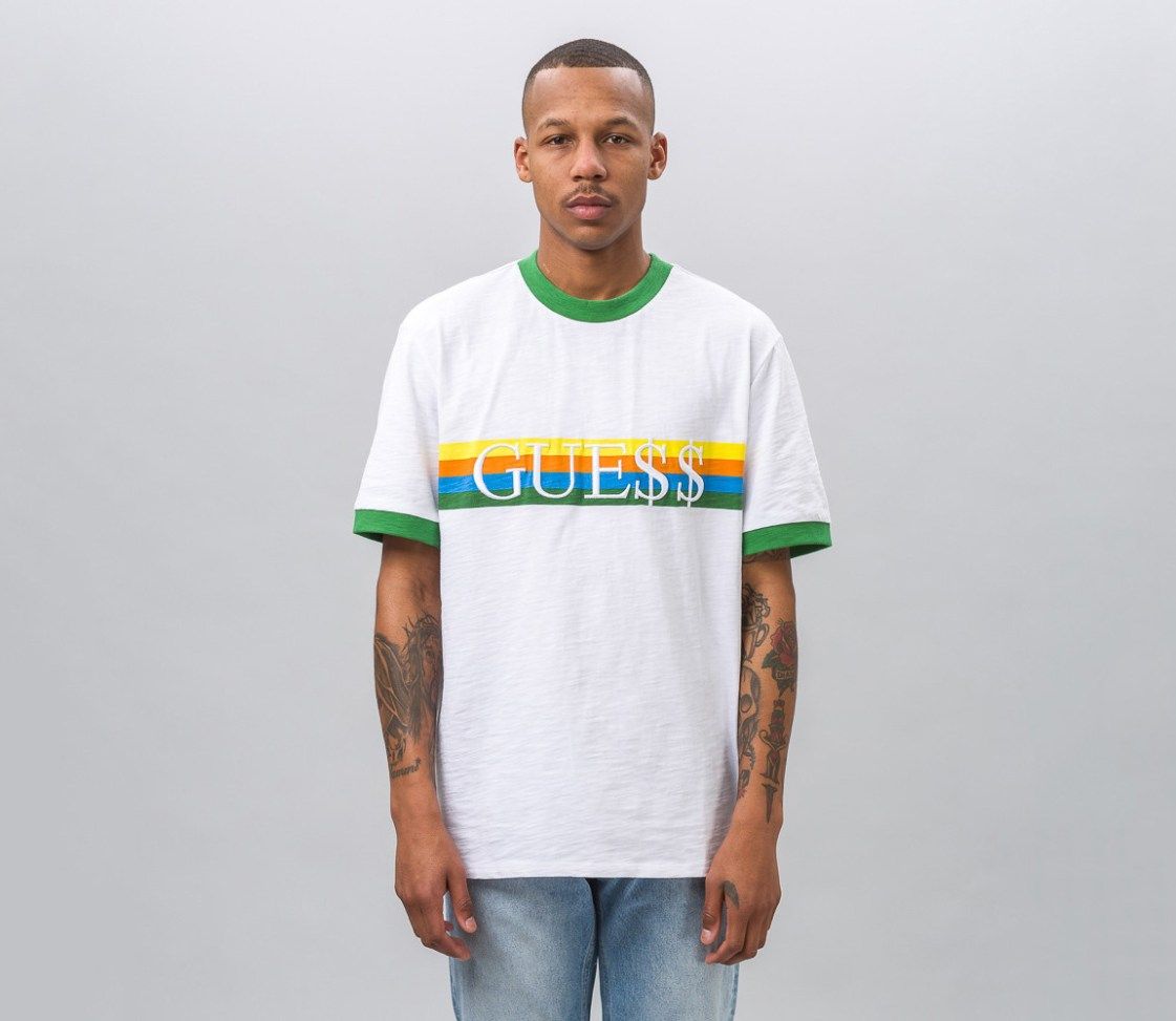 So A$AP Rocky explained last year the birth of the collection created in collaboration with Guess Originals. The series of bomber denim jackets, t-shirt, shorts and skinny jeans is now enriched with new pieces. Which? A handful of caps of various colors, from purple to pink, and two t-shirts with the inscription "Guess" positioned above stripes-rainbow. Do you like them?