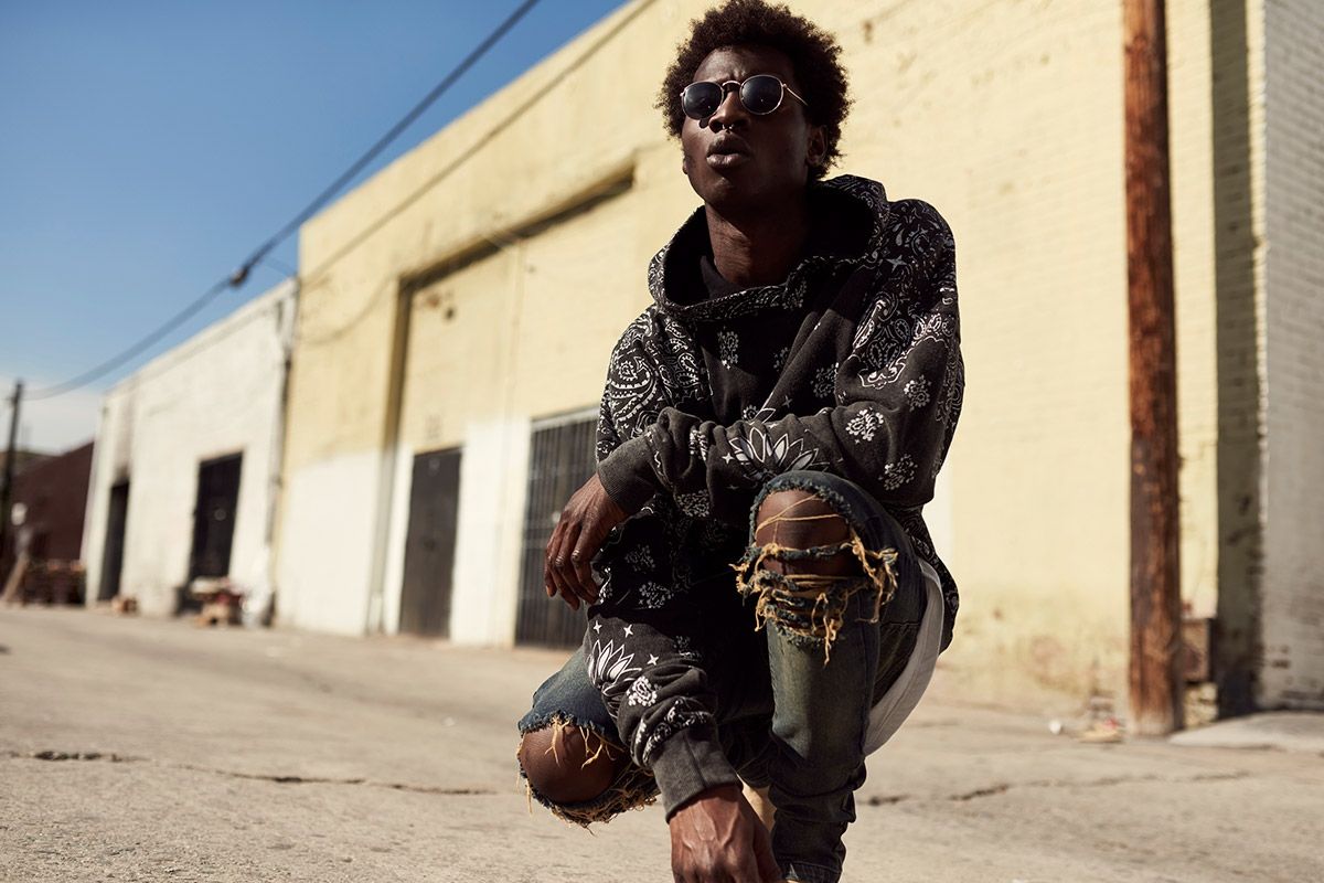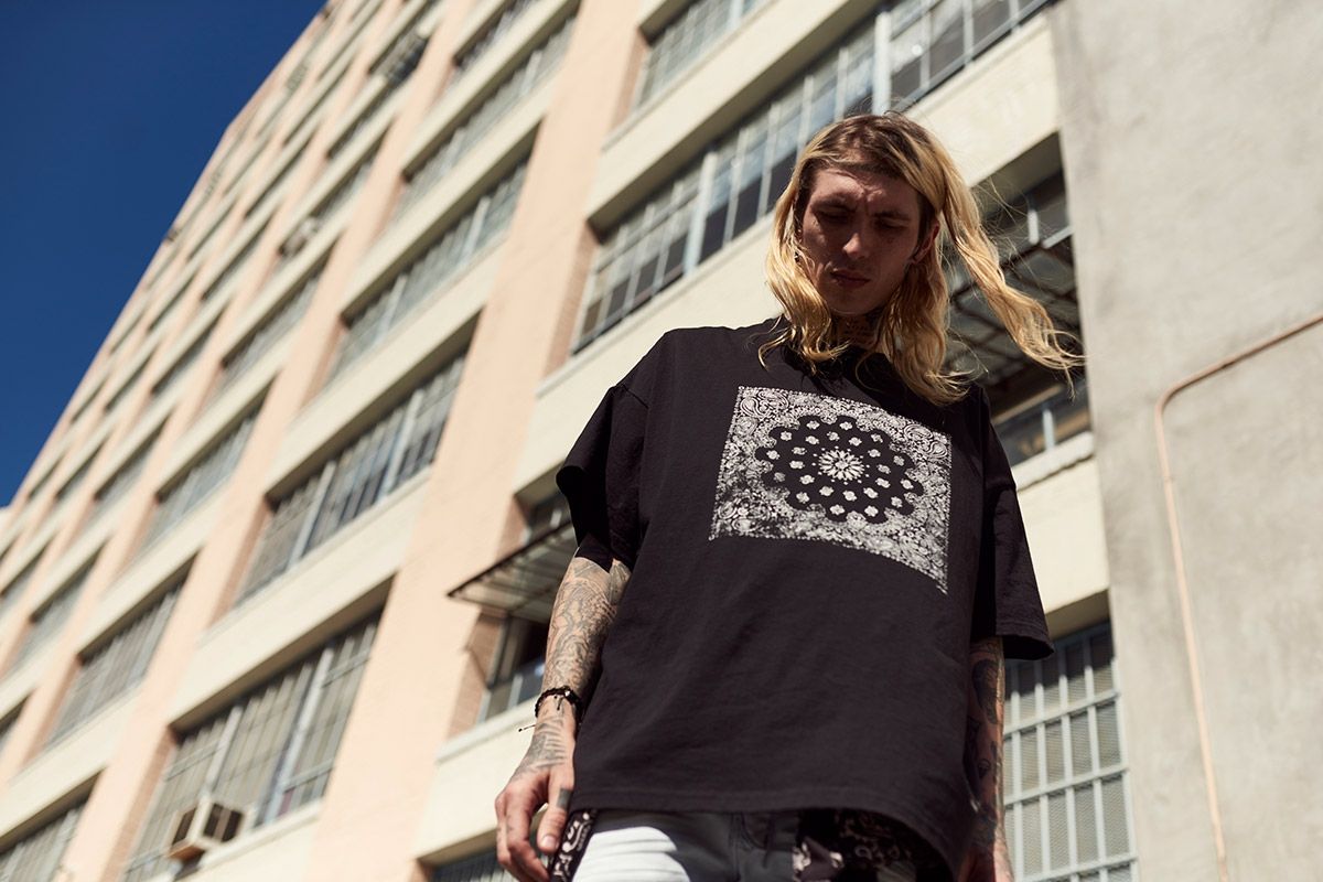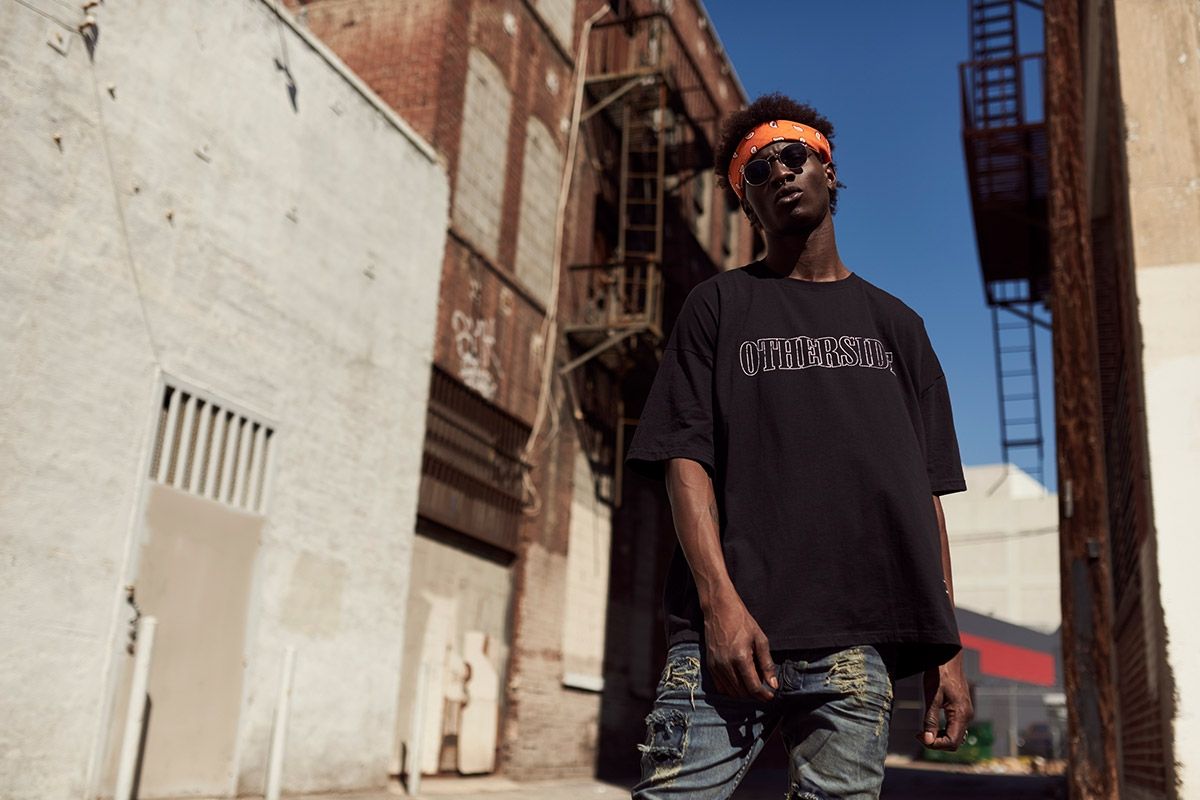 The UK brand founded in 2012 by Nicky Other continues to create unique and original garments, made reworking timeless classics through nostalgia updated by a vision of contemporary aesthetics. This time the vintage element comes from80s rock'n'roll and 90s hip-hop. The models Bradley Soileau and Elias Owens in a sunny L.A. wear zip hoodies in ultra-soft Supima cotton and shirts with paisley prints, tie-dye effects, denim t-shirts and bandanas. In "Otherside" urban and contemporary street style stems from the past and is combined with quality fabrics creating a series of clothes easy to mix together for unique and personal outfits.