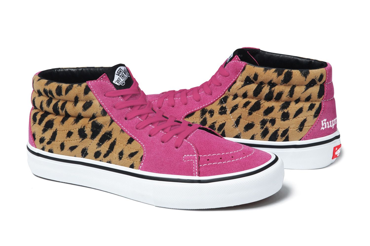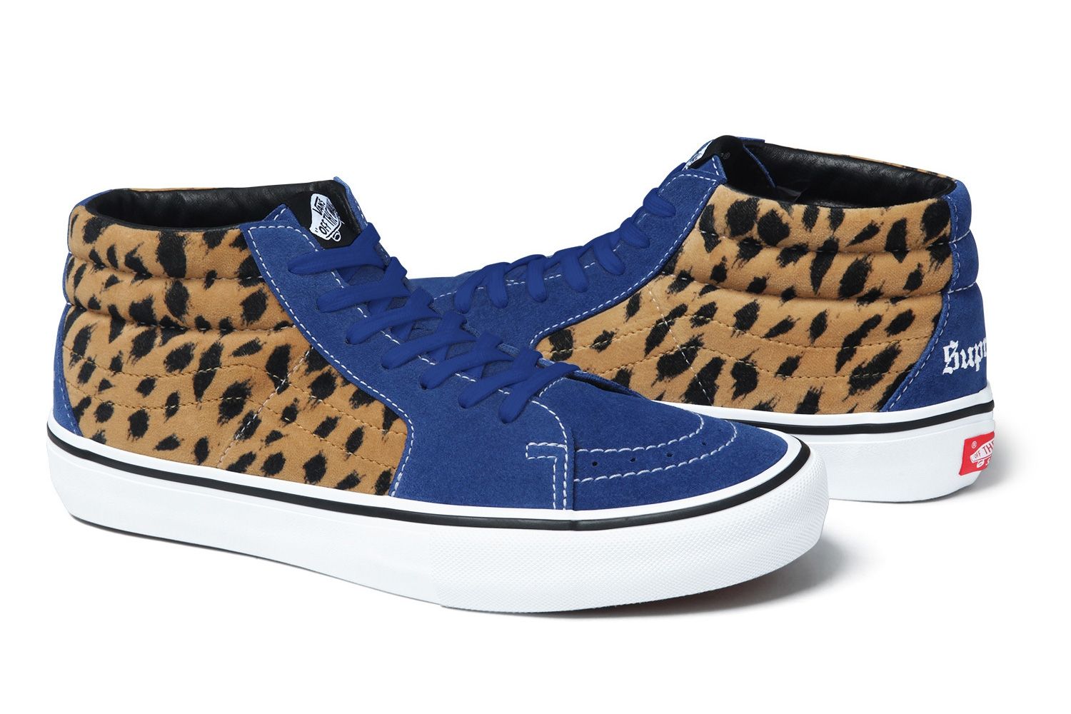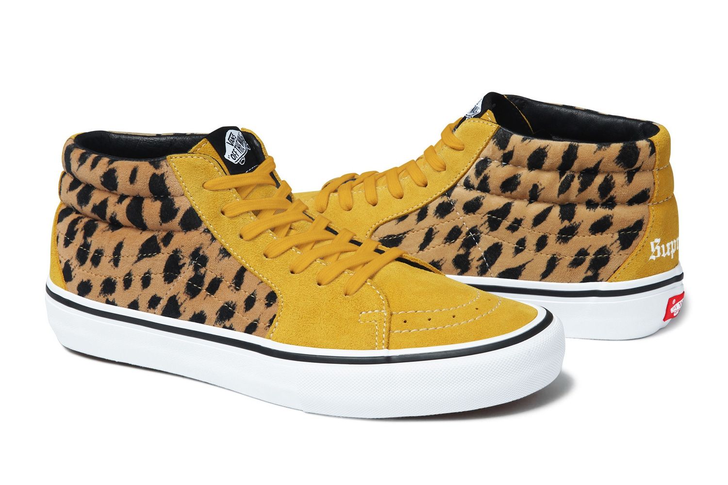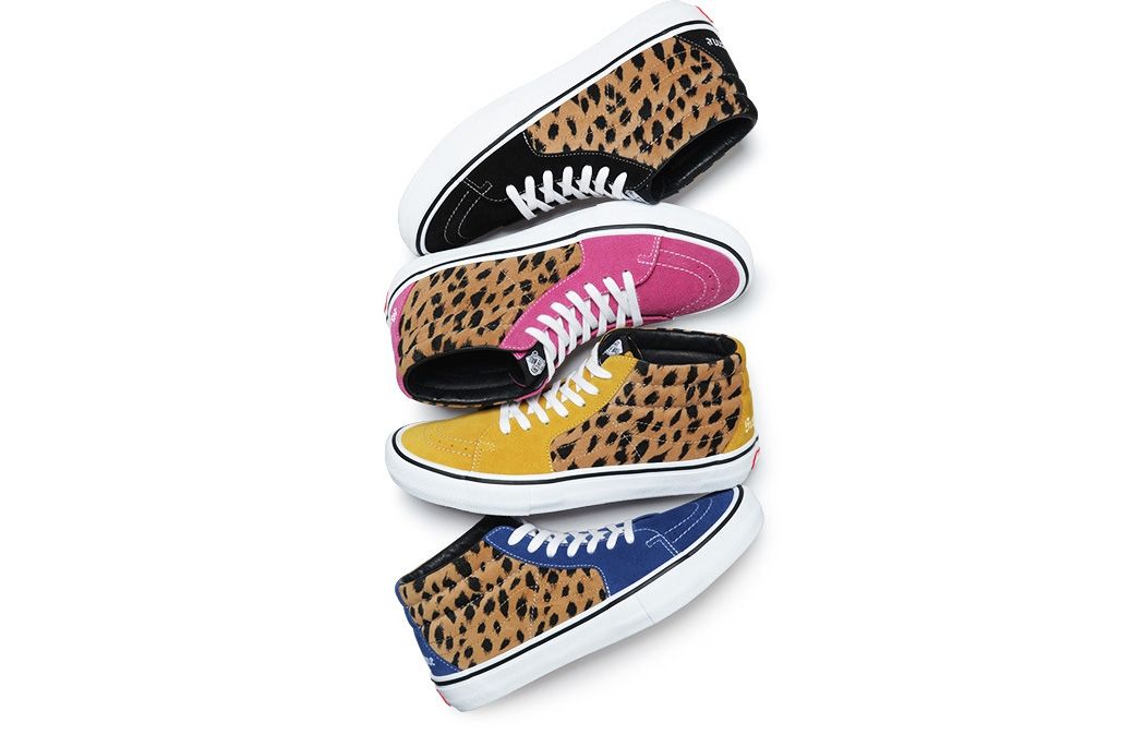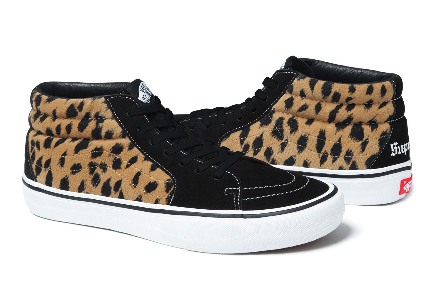 Supreme is for sure the most quoted brand in last months. Collaboration with Louis Vuitton and its drops immediately sold out, increase the hype around the brand. The news is the latest collaboration with the American skate brand Vans. The two have, in fact, interpreted the Sk8-Mid Pro model, declined in four colors and with an animalier pattern. The sneaker will available starting from March 2 in New York, Los Angeles, London, Paris and from 4 March in Japan. Stay tuned for more informations!