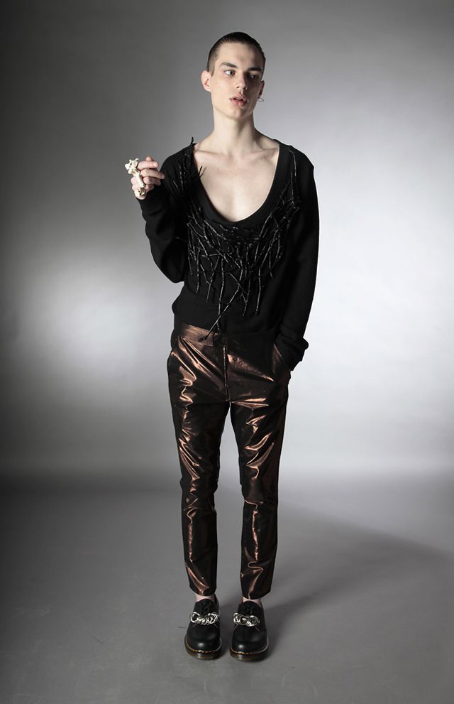 I’ve always had a creative hunger from an early age, but was never brought up in an area which allowed me to be as creative as I would have liked. So I spent a lot of time surrounding my self with books, magazines and trips to museums and galleries etc. This journey meant that fashion would became a way of expressing thoughts and feelings and ultimately freedom. Then when I started CSM, I felt so free to be creative and feel I thrived in that environment.