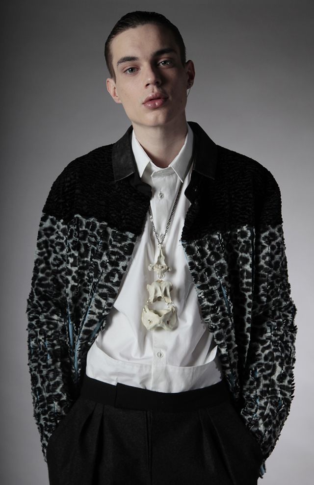 It wasn’t necessarily a refusal of modernity, but I did definitely want to inject a more hand-made and couture quality into this collection. Which meant that looking at neanderthal’s attitudes and way of living was a way to achieve a sense of couture. I’m talking about manipulation of fabrics, textures etc. all leading to a real excitement. Going beyond what has been known to be fashion, a sort of challenge and game with details and features in menswear.