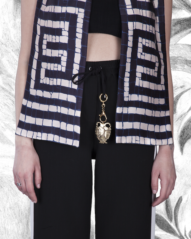Ever Posse's first editorial shows us an essential capsule collection that features unisex pieces – a hoodie, pants, jewels and a scarf – enriched with graphics who recreate the ancient Hellenic artworks. Mosaics and Versace-like graphic, hand made, motifs make the collection more catchy and innovative. It's not a coincidence if the brand has already conquered the attention of some local rappers like the members of Dark Polo Gang, who show off the pieces of the collection on their socials.