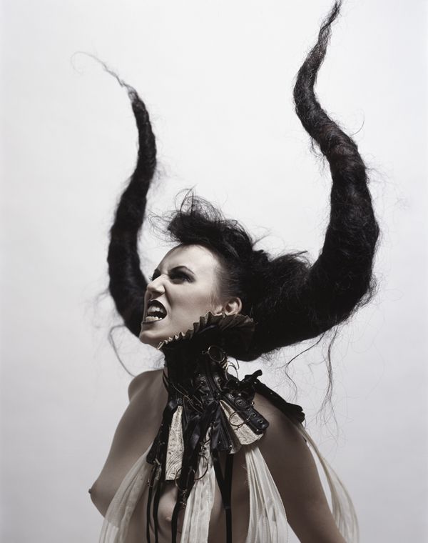 I love intricate work, so currently designers like Iris Van Herpen really grab my attention as her pieces evoke alien worlds all of their own. One of my all time favourite designers is also a friend. His label KmRii ( HYPERLINK "http://www.kmrii.com" "_blank" www.kmrii.com) is just amazing, though he's something of an underground enigma! His work and its world really inspires me. And of course Mugler and McQueen are my idols with their theatrical work and concepts. ?I'm not sure who I'd want to collaborate with. it changes with my mood. I think unfortunately the people I admire most are similar to me in that they are mostly not inclined towards the existing world of fashion so I have set myself quite a challenge, but we like those around here.. You'll have to wait and see..
