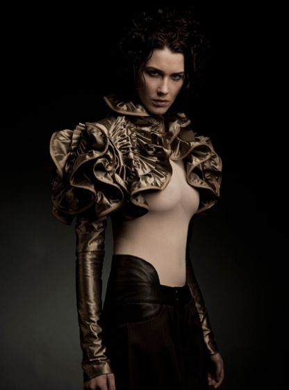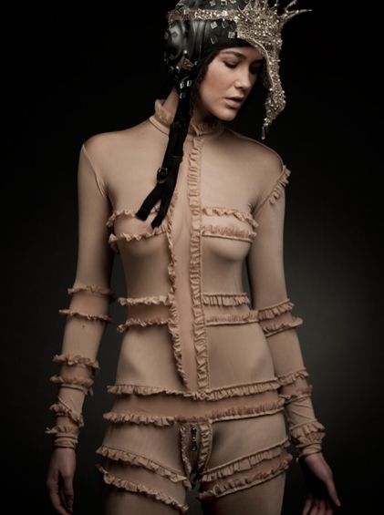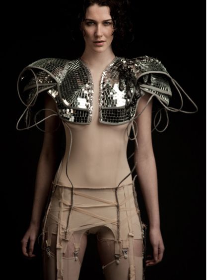 Well I'll always make clothes so I saw no reason to study it. I'll take the industry on from my own angle rather than a pre-imposed one.. I'm self taught and like it that way so I decided to study what interested me. I love the idea of exploring the psychology behind clothes and how they affect the wearer and the viewer. Theatre helped me explore this and my spacial awareness of how things exist in their envorinment and the implications of that. Now i'm refining it into wearability as well, but it means I'll hopefully never lost my dramatic streak.
