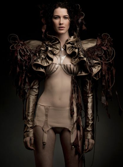 Quando l’intima psicologia del teatro incontra l’estro della moda, è allora che si ha davanti qualcosa di grande. Ed è allora che si può decisamente assistere ad uno show. A tal proposito l’artista che incontriamo quest’oggi, Rachel Freire, sa davvero come allestire un’opera d’arte completa, fondendo scenografia, dramma, design e teatro, collocandosi in una posizione completamente diversa, innovativa, oserei dire intellettuale all’interno dell’attuale fashion system. Bondage, rouches e biancheria intima coprono le modelle di un’opulenza sadomaso dal gusto spiccatamente teatrale, la cui scenicità evoca a tratti il compianto McQueen del quale, si dice, Rachel conosca i segreti del genio più profondo.