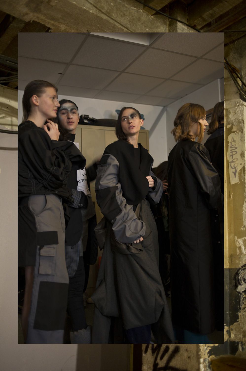 The collection spoke by itself: sophisticated shapes, conceptual cuts and a palette that merges dark tones with dull pastel colors. Everything reminded of a lost childhood. The sudden and estranging road that brings to the loss of innocence. Melancholy and poetry of time endless flow. The brilliant casting and styling by the young and talented Elena Mottola strongly underlined the main themes of the collection. She was capable of giving life to a perfect mix of non-models, bringing out an atmosphere, both before and after the show, that totally recalled the brutal romance of Larry Clark's Kids. Afterhomework is growing fast and deep. Today, Afterhomework Paris has caught the eye of a quite large international press and insiders audience, yet it doesn't seem to be losing a single atom of its former spirit. The teenager designer and his stylist partner are voices of a brand new generation that is claiming for attention and respect and that totally deserve them.
