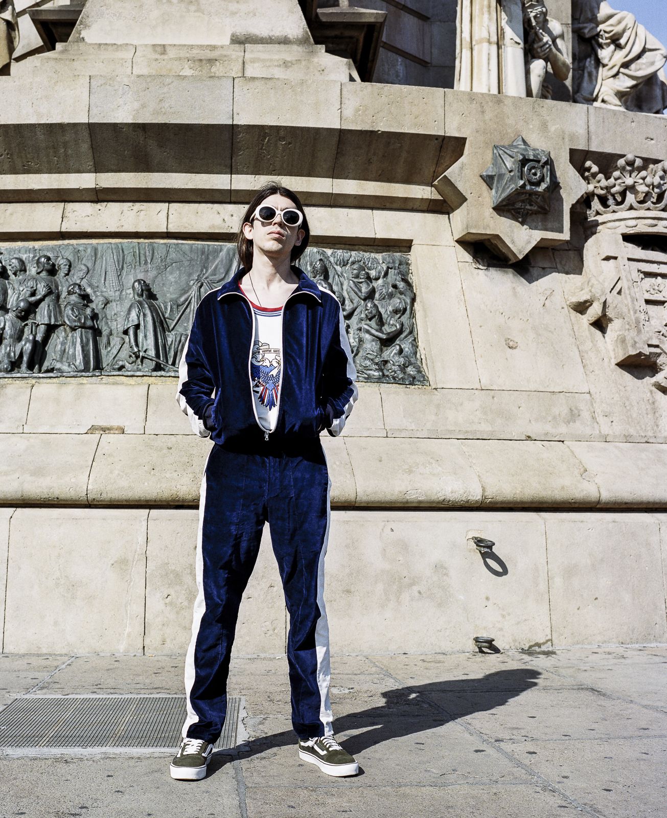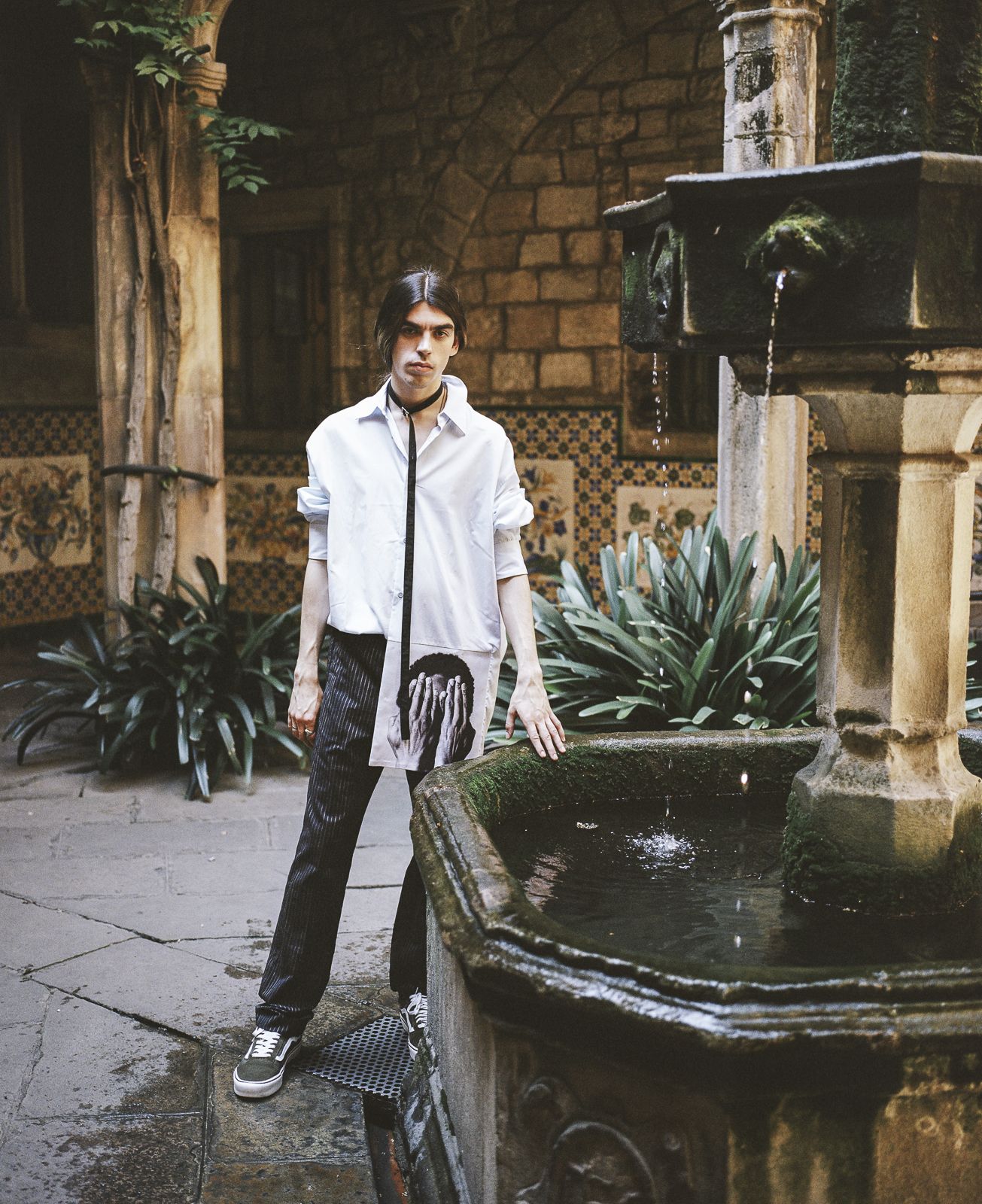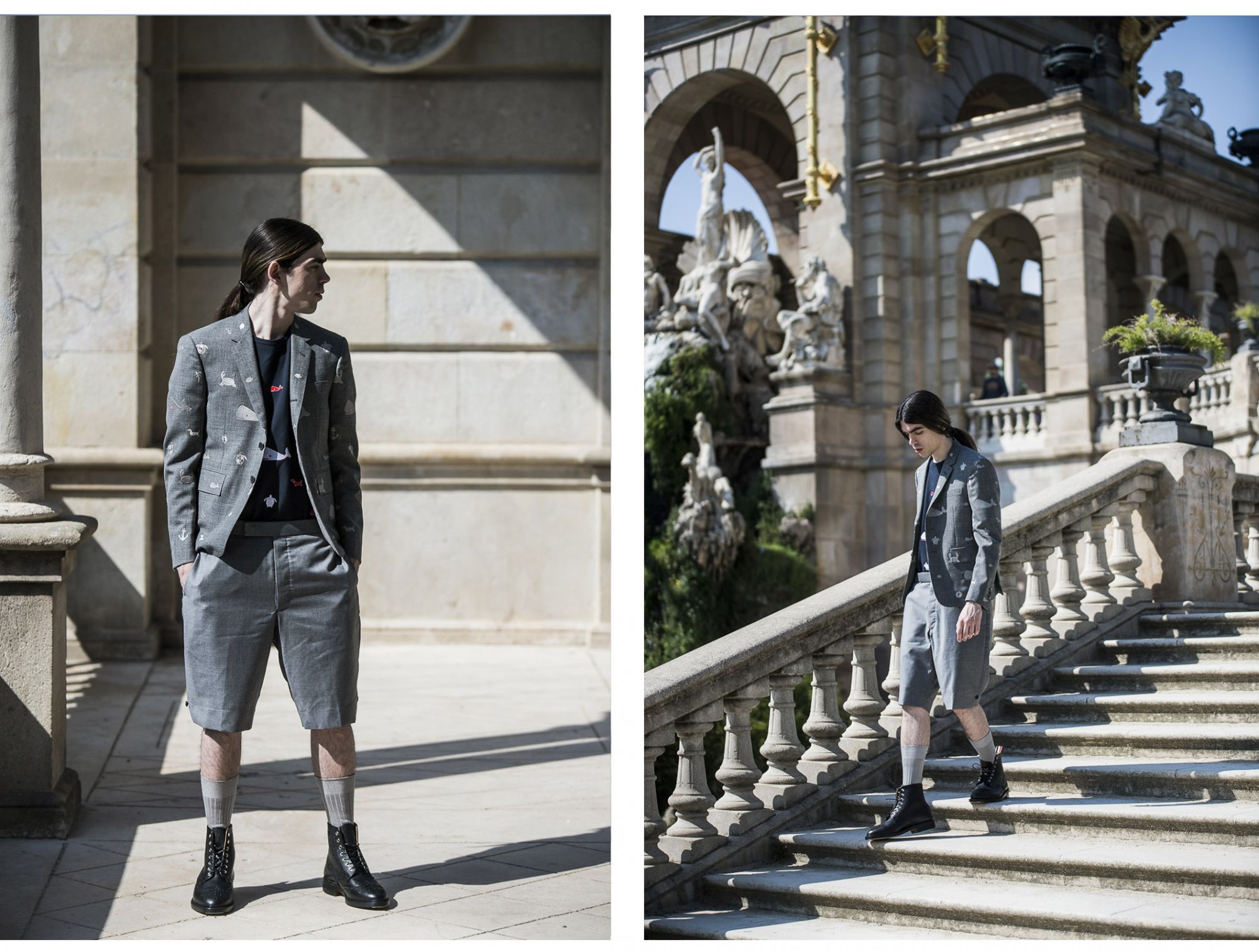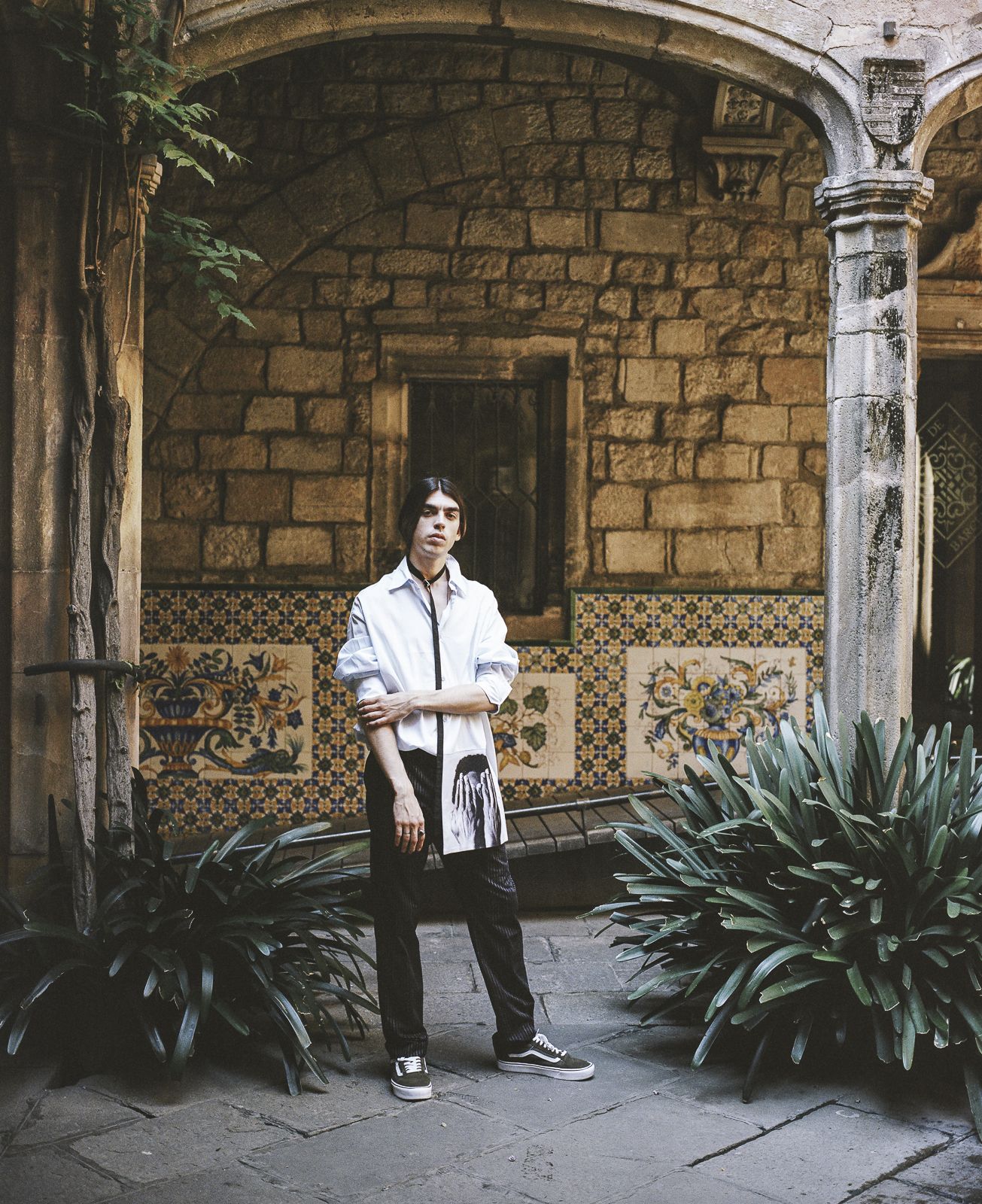 The model and DJ Cyber69 is immortalized is shot by Julien Boudet on the streets of Barcelona, while he explores the most important monuments in the Spanish city wearing OFF-WHITE, Raf Simons, Dries Van Noten, Acne Studios, Haider Ackermann and many others, creating an expressive visual tour between modern and contemporary.