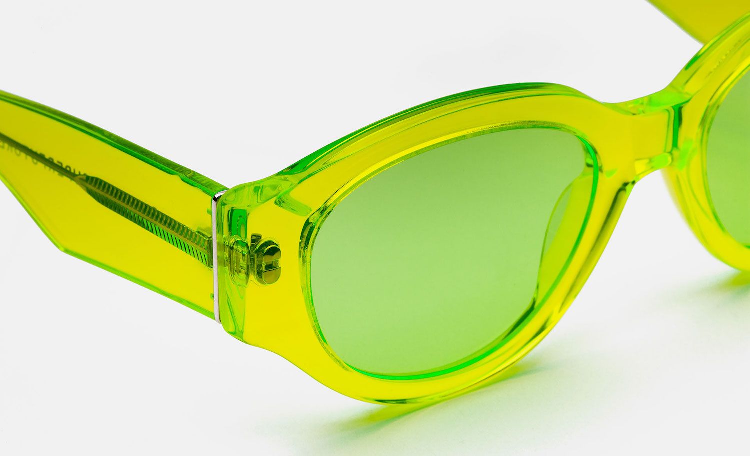 The graphic design on the lens breaks the traditional structure of this model, making it a contemporary classic.