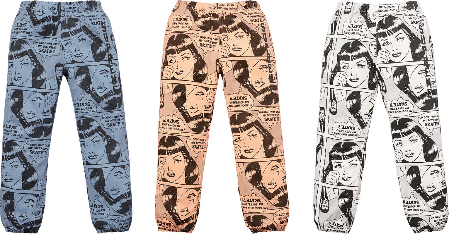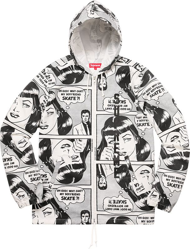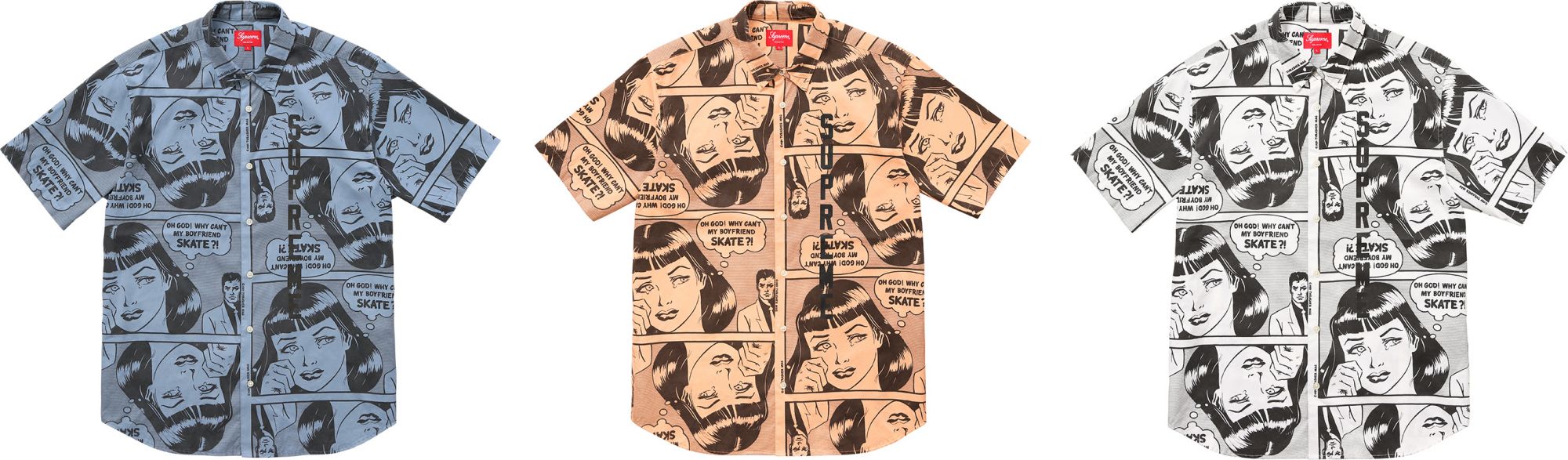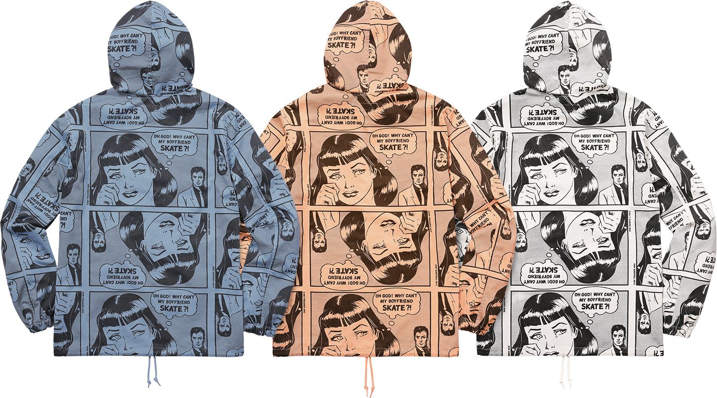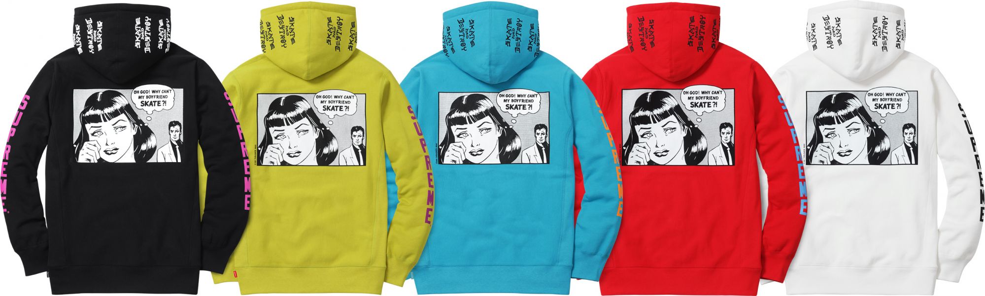 As one could expect from a collaboration with the American magazine, Supreme x Thrasher is a celebration of the skate lifestyle rich in odds such as Skate and Destroy and the iconic Why can not my boyfriend skate? blended with graphics largely inspired by Roy Lichtenstein's works and pop-art movement leitmotifs.