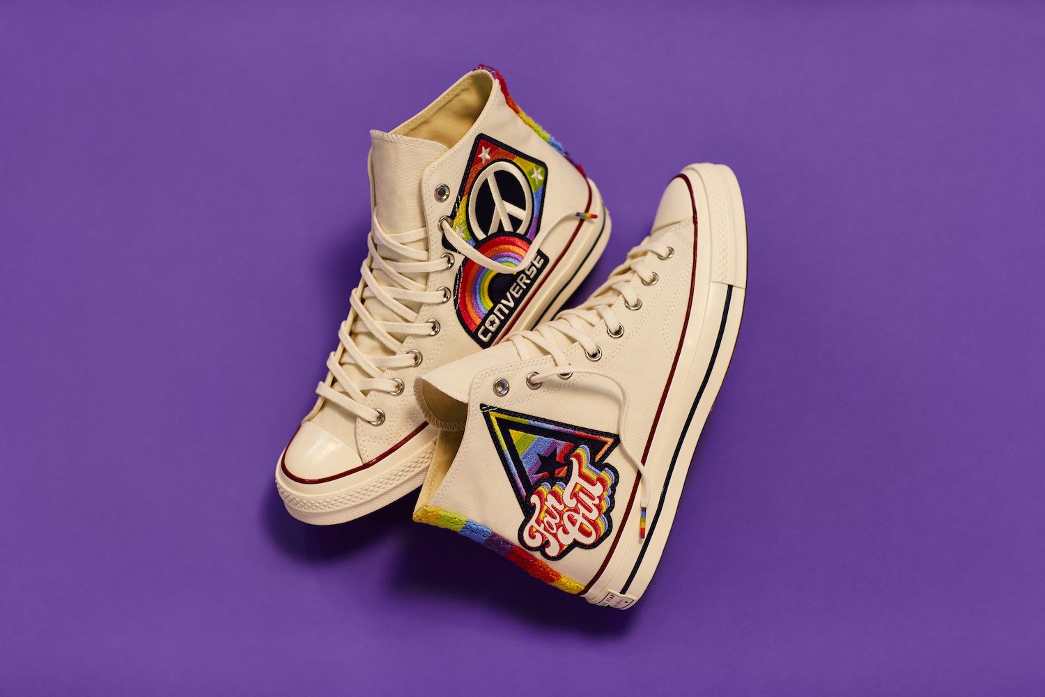 The Converse Pride Collection is made up of modern re-releases of the iconic Chuck Taylor All Stars and Chuck Taylor All Star 70's models with bright colors and statement details like the '70s inspired patches and the rainbow rubber-sole. The entire sales revenues will support and fund Miley Cyrus' Happy Hippie Foundation.