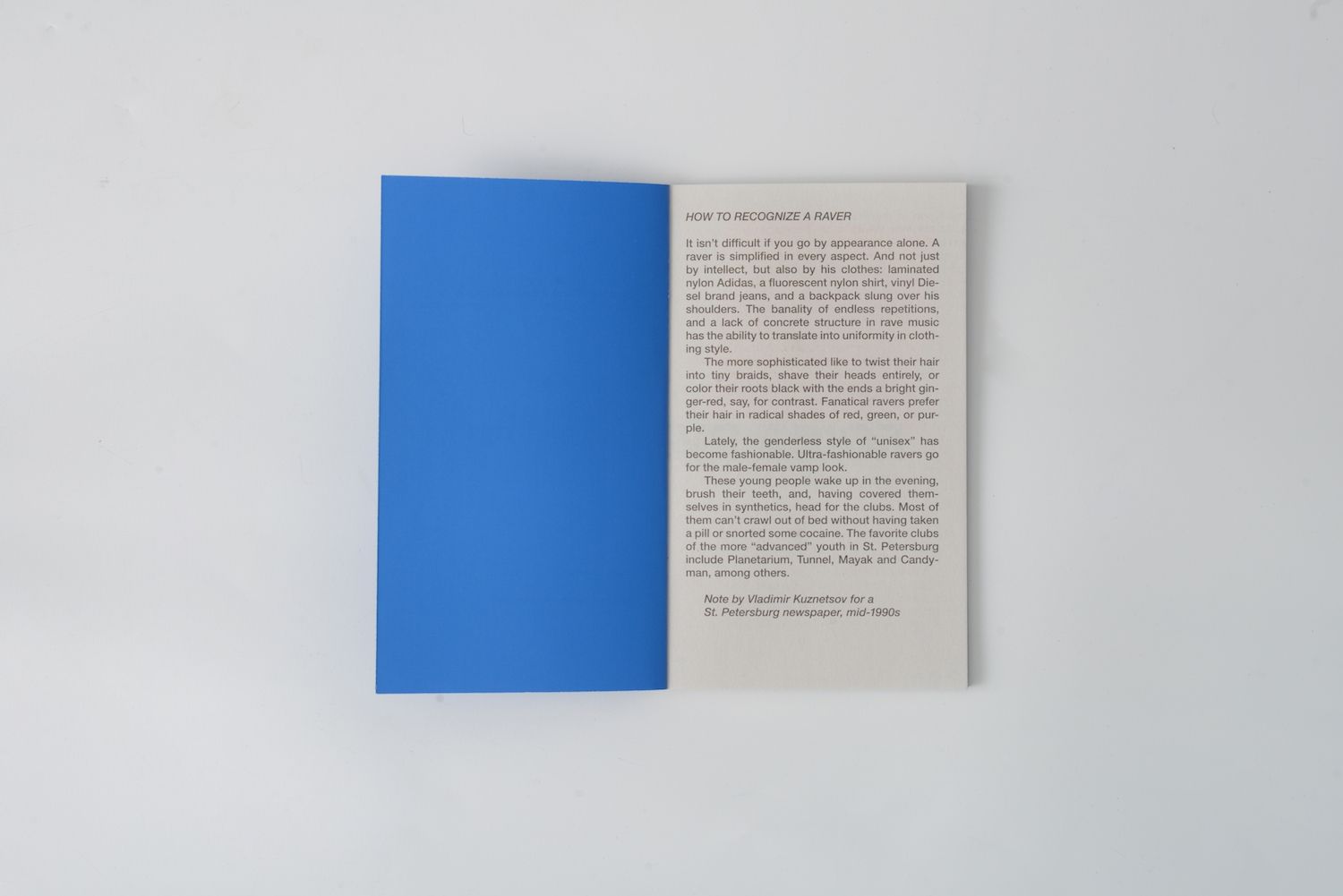 САНКТ-ПЕТЕРБУРГ is a short essay that traces the origins of the Russian underground scene through archival images and direct testimonies. Opening the dances is the essay by Timur Novikov How I Created the Russian Rave, followed by personally-personalized narratives directly involved in the development of the rave movement, without counting extracts from artist Timur Novikov, the main catalyst of the movement, and Alexei Yurchak, anthropologist and expert in post-Soviet history.