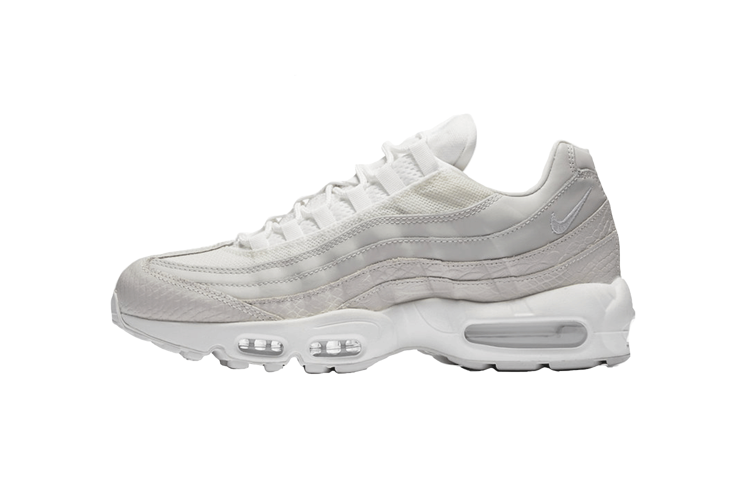 Making a step back to a couple of years ago we could have seen the synthetic python era coming to an end. In fact serpent skin revisitation was a classic for retro silhouettes, until the audience got tired of it, because of the large amount of tacky releases, and the whole thing imploded. However this 2017 has brought us in a new retro-era and after the incredible success of the Air Max 98 x Supreme snakeskin, Nike is grabbing the chance to drop a python iteration for Air Max 95 and 97 too in a peculiar white colorway for summer. Both the shoes will be available at Nike retailers in store and online.