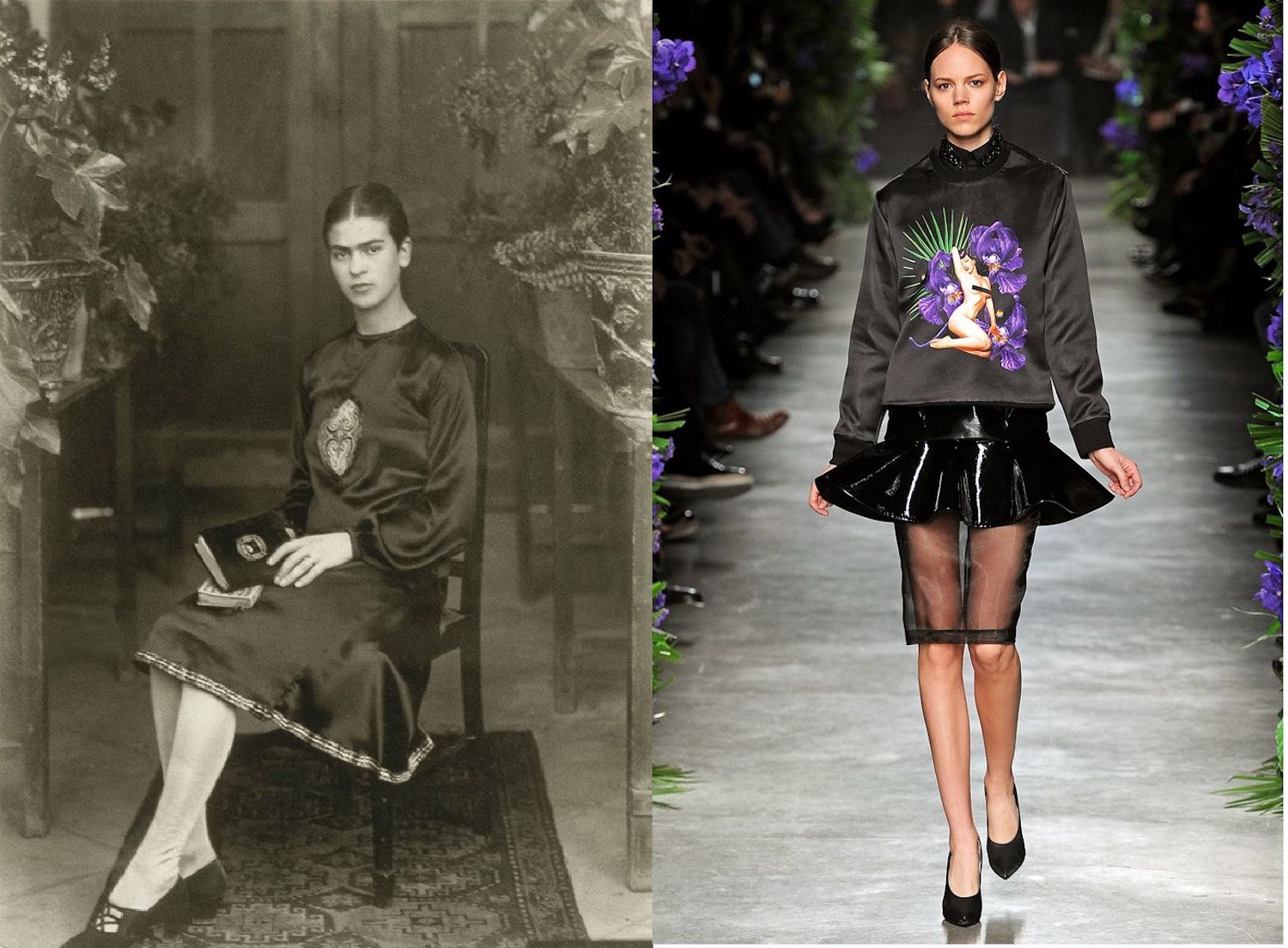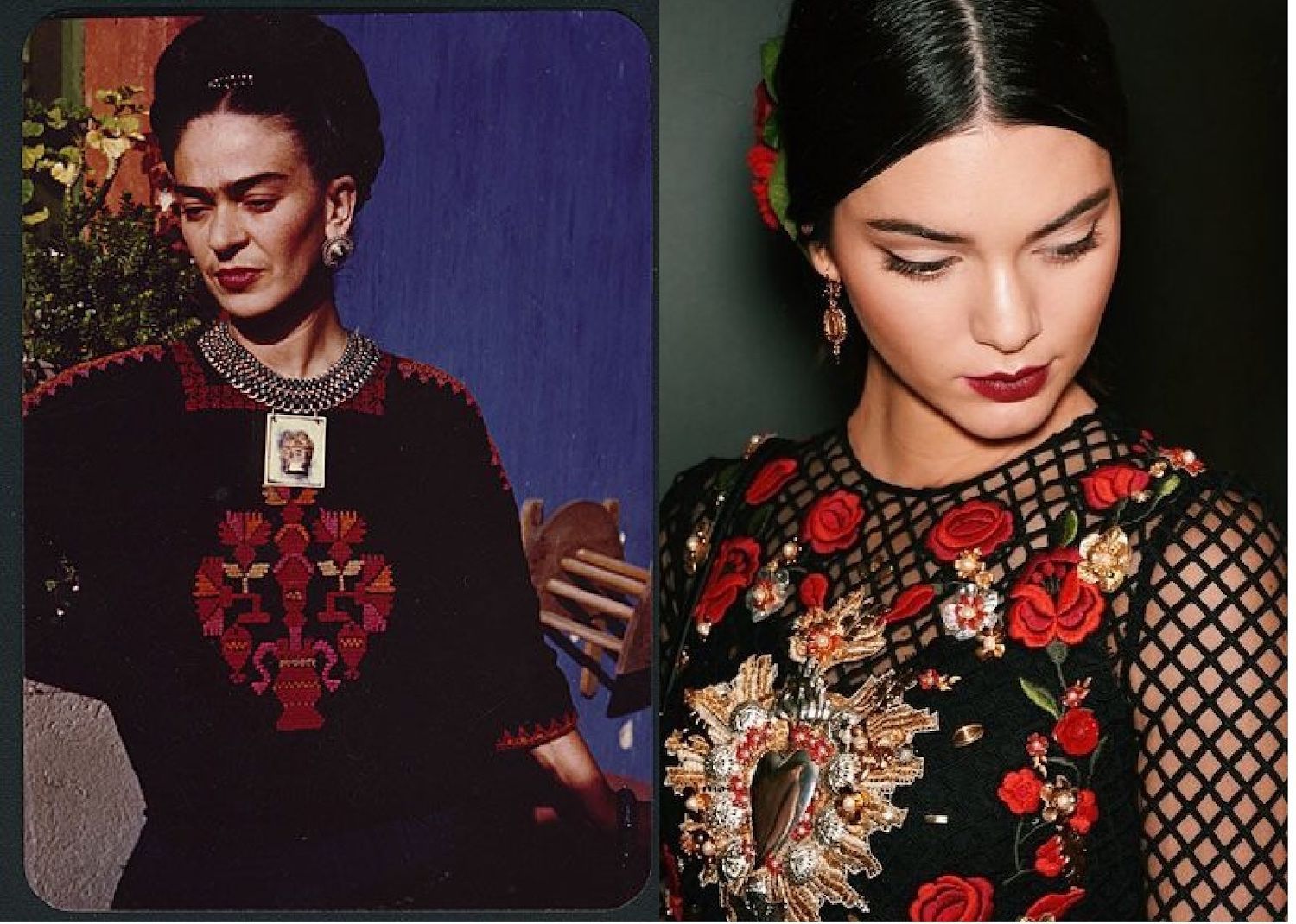 Style icon since ever, Frida Kahlo's look is unmistakable: the monobrow, the crown of flowers, flashy jewelry, traditional Tehuana clothing, the huipil shirt, skirts, shawls. Frida is perhaps the female figure, with the Madonna, most recognizable, loved, honored and copied to the world.