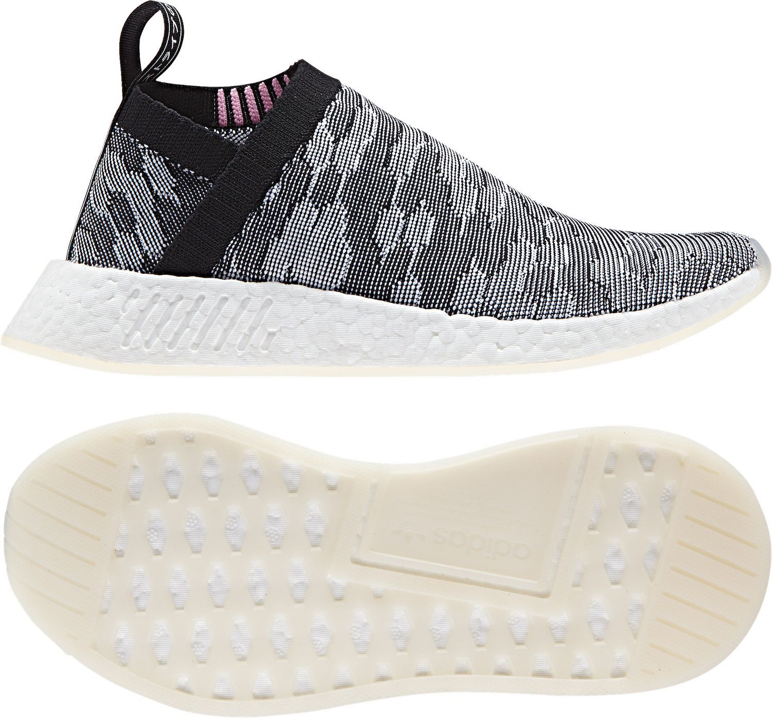 Inspired by state-of-the-art philosophy, the futuristic NMD CS2 PK model sees a black-over-black graphic pattern with pink touches and shadow knit skull technology an extraordinary twist effect on the Primeknit fabric.