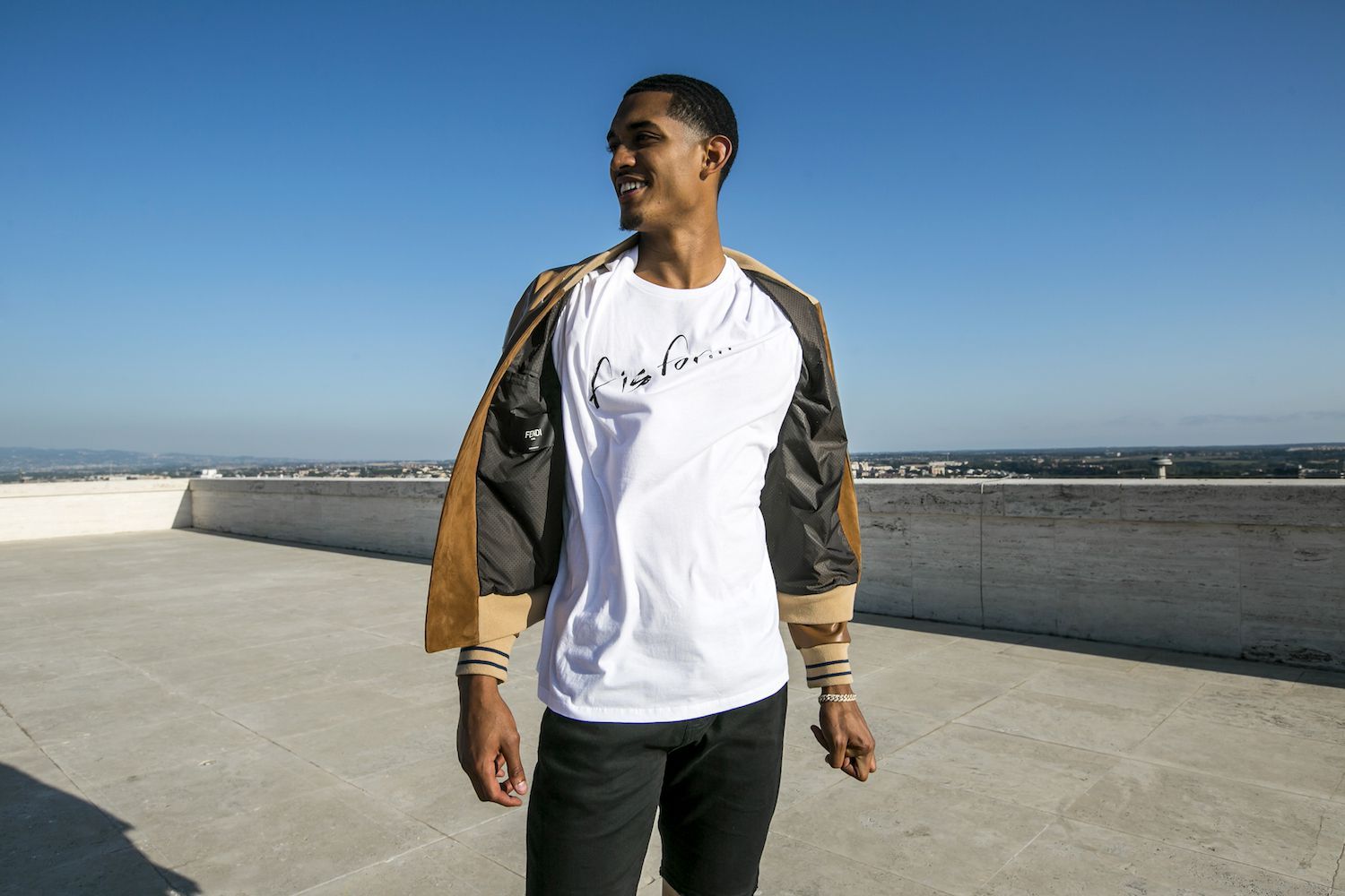Jordan Clarkson x F is For... The concept of F is For... challenges new heights on the roof of the Palazzo della Civiltà Italiana