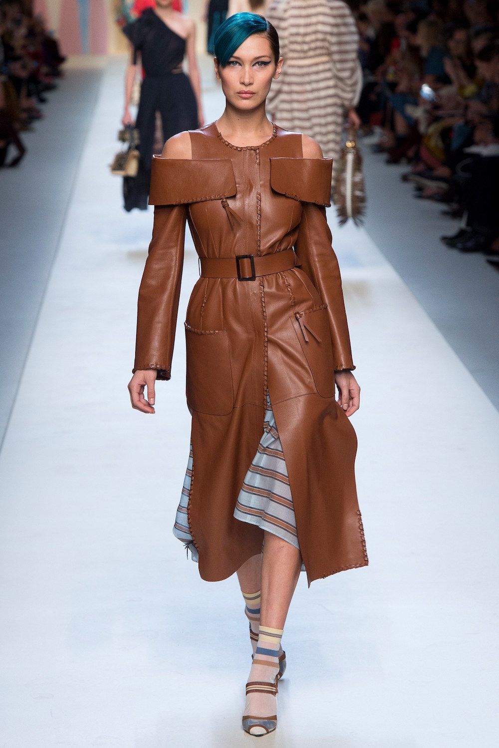 While on the catwalk alternates the most cool models of the moment, from Bella and Gigi Hadid or Kendall Jenner to season revelation Kaia Gerber who opens the show, among the guests sitting in the front row are Kris Jenner, Anna Wintour, Caroline Vreeland, Giovanna Battaglia, Chiara Ferragni and Levante, who will be the face of the new Fendi sunglasses.