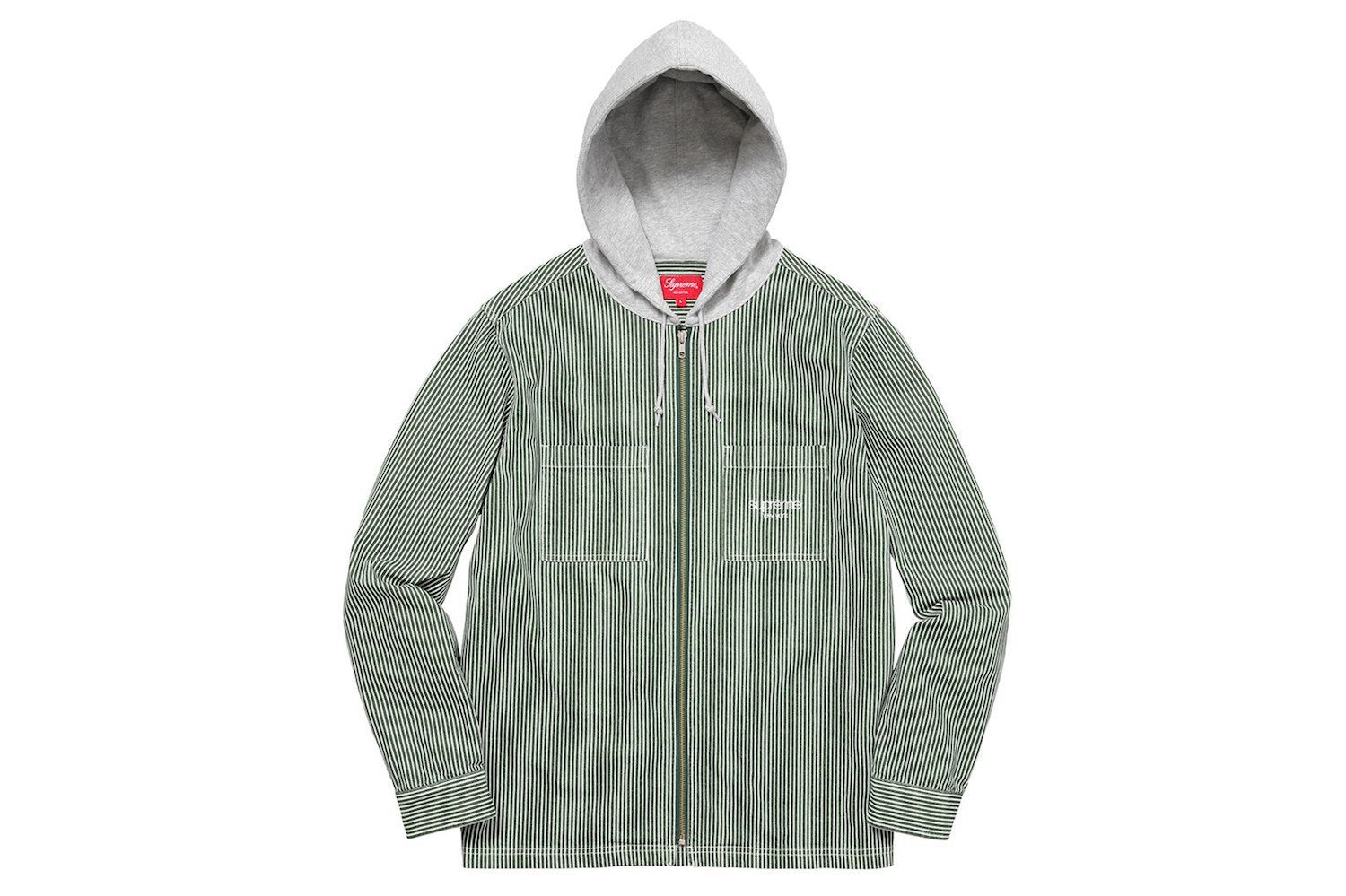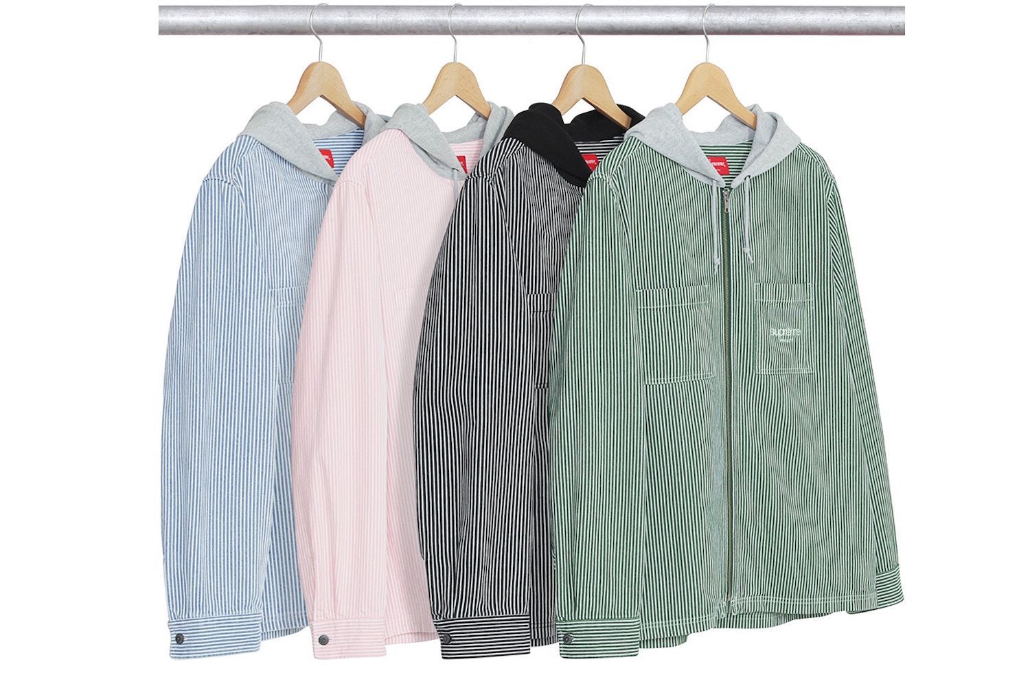 Hooded Stripe Denim Zip Up Shirt $128 / £109