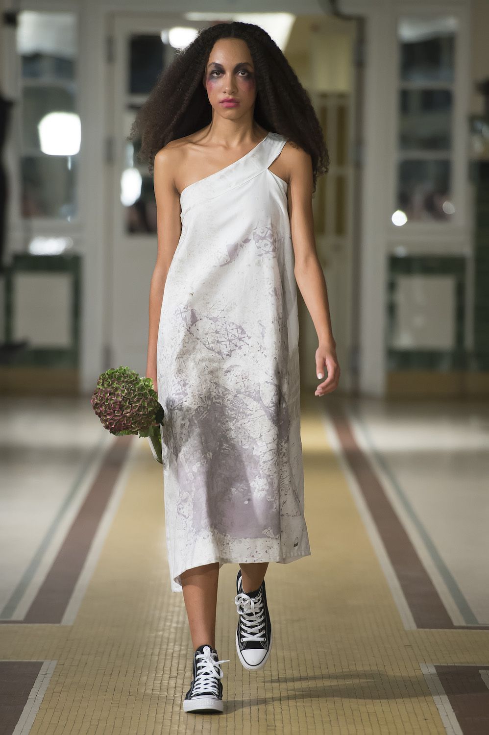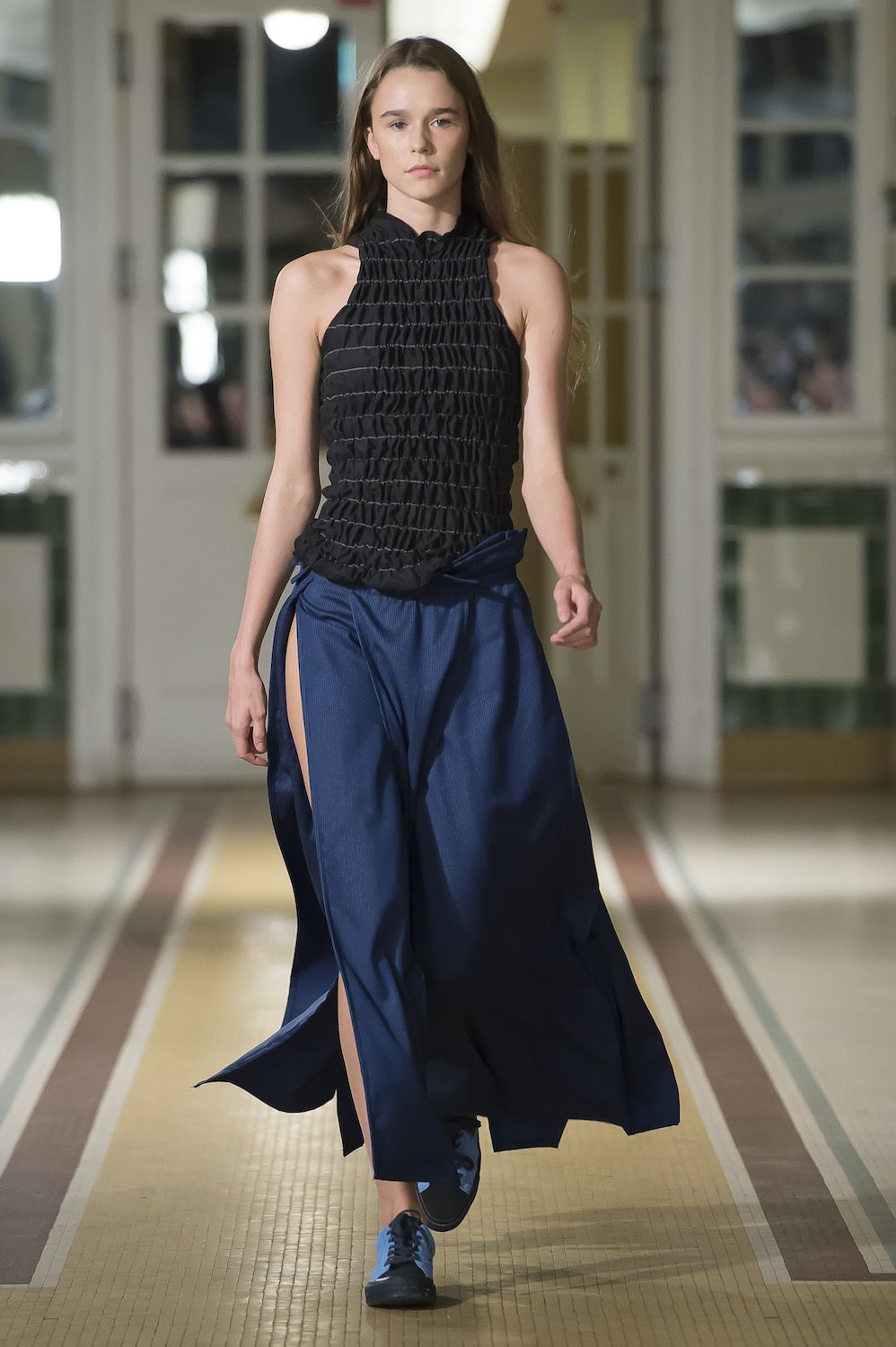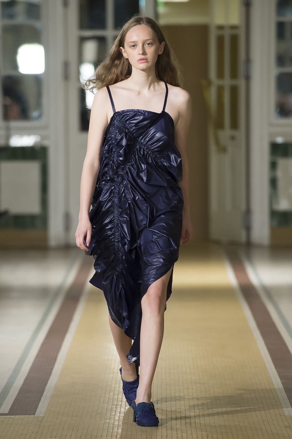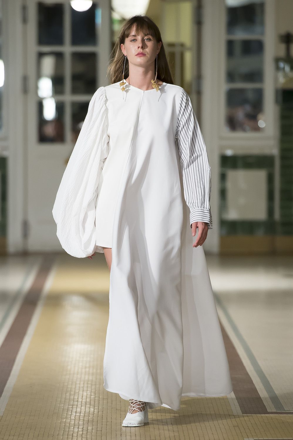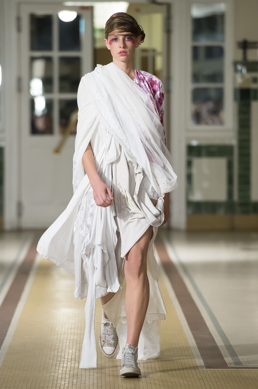 The result? A collection that abolishes the border of the genre and where each look is a one-off, independent from the previous and the next, a unique expression of a huge creative passion. Pants embellished with rouges, oversized pieces alternating with cropped garments and dresses shaped by drawstrings for an as harmonious as chaotic and wonderful mix between urban and sport style.