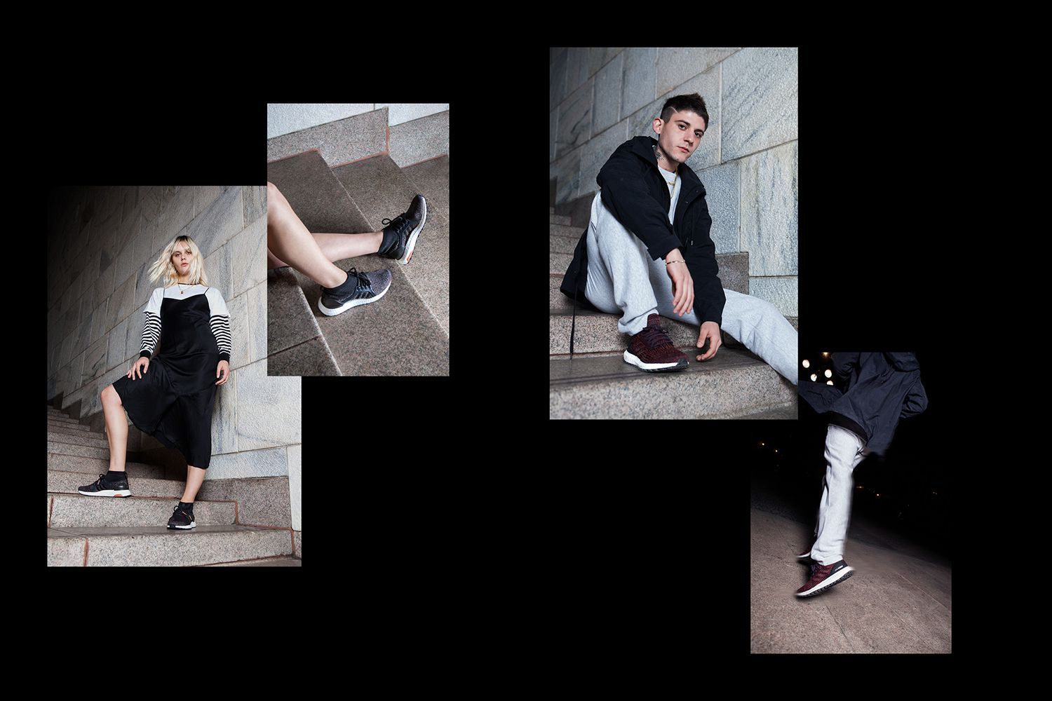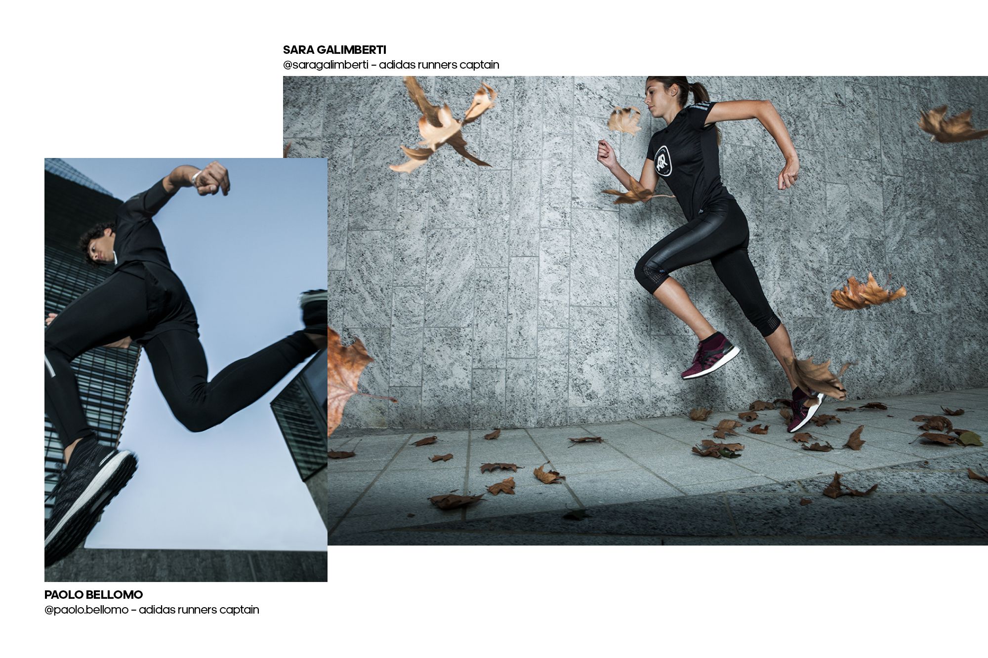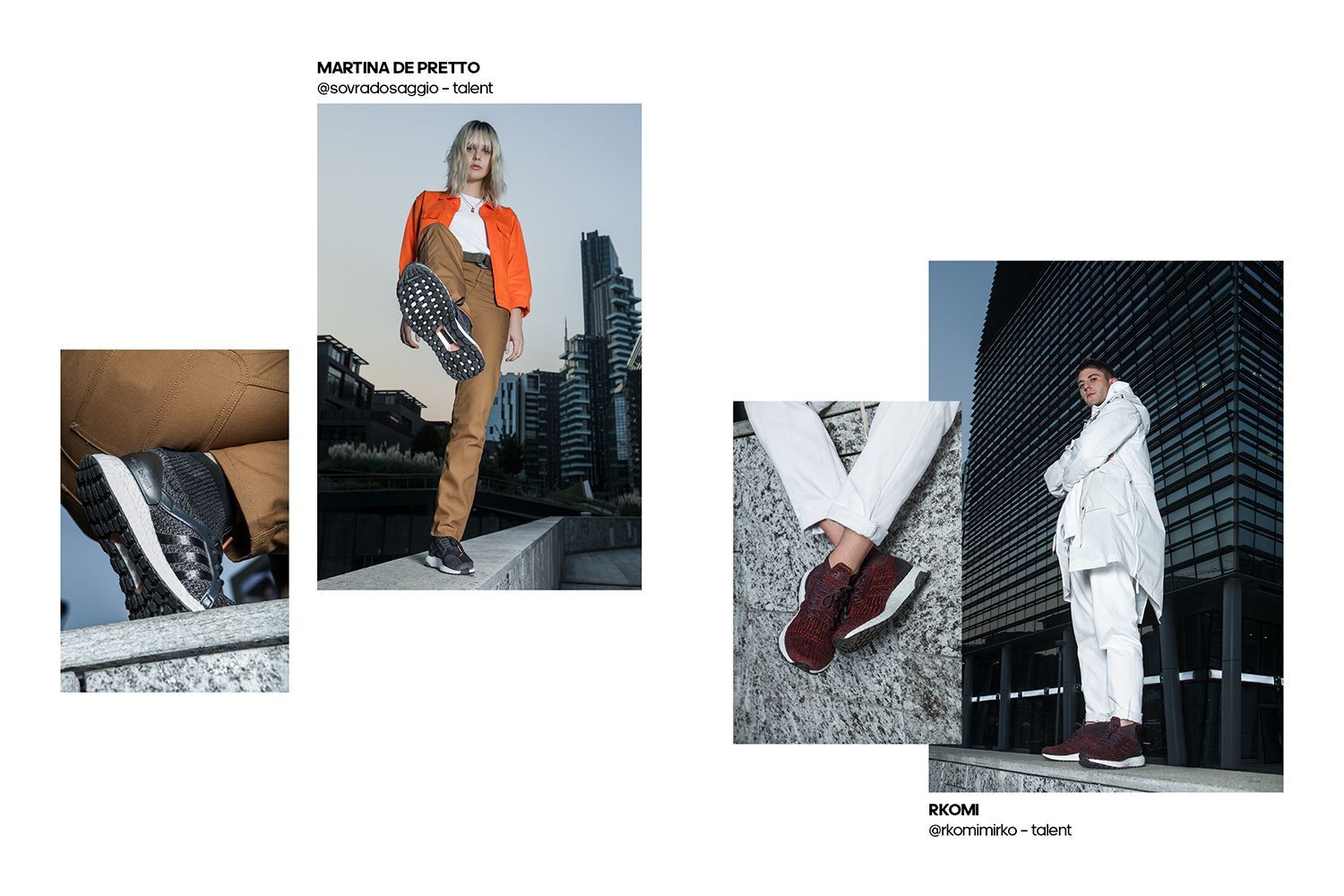 Their innovative technology provides the best performance regardless of the surrounding environment. The two captains of the adidas Runners community, Paolo Bellomo and Sara Galimberti test the technical capabilities of UltraBOOSTon every condition and temperature through a series of dynamic shots and video while the two Milan's creators, selected for their unique style, Rkomi and Martina De Pretto, interpret the infinite urban possibilities of the two silhouettes.
