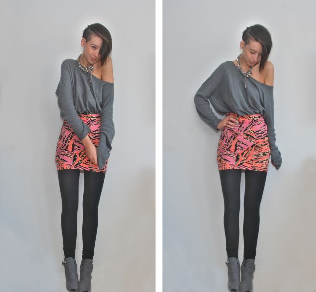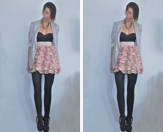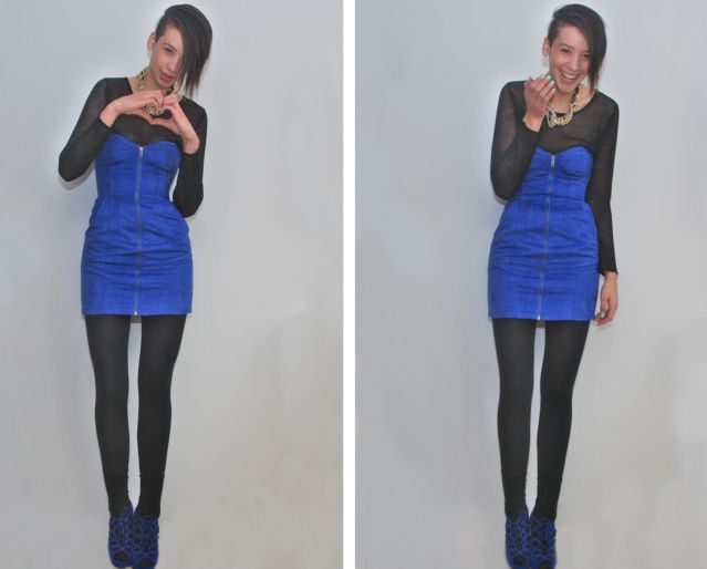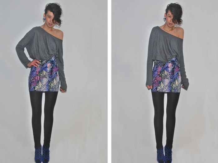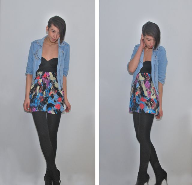 When I go out I love to wear dresses and skirts. The perfect outfit for the night will be a multicolored dress with nude back seam tights, sky high platforms, a neutral clutch and a blazer if there is a chilly breeze.