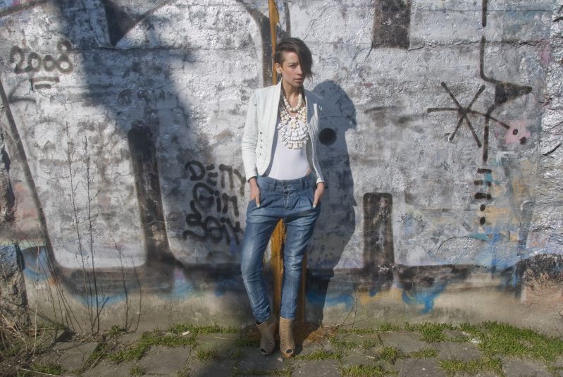 Most of the times I go for basic items and work around that. In the morning I tend to go for light colors so I would say a perfect morning outfit for me is a pair of slouchy jeans, a white body, a statement necklace and a light washed denim jacket.