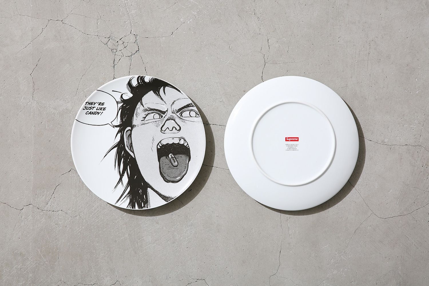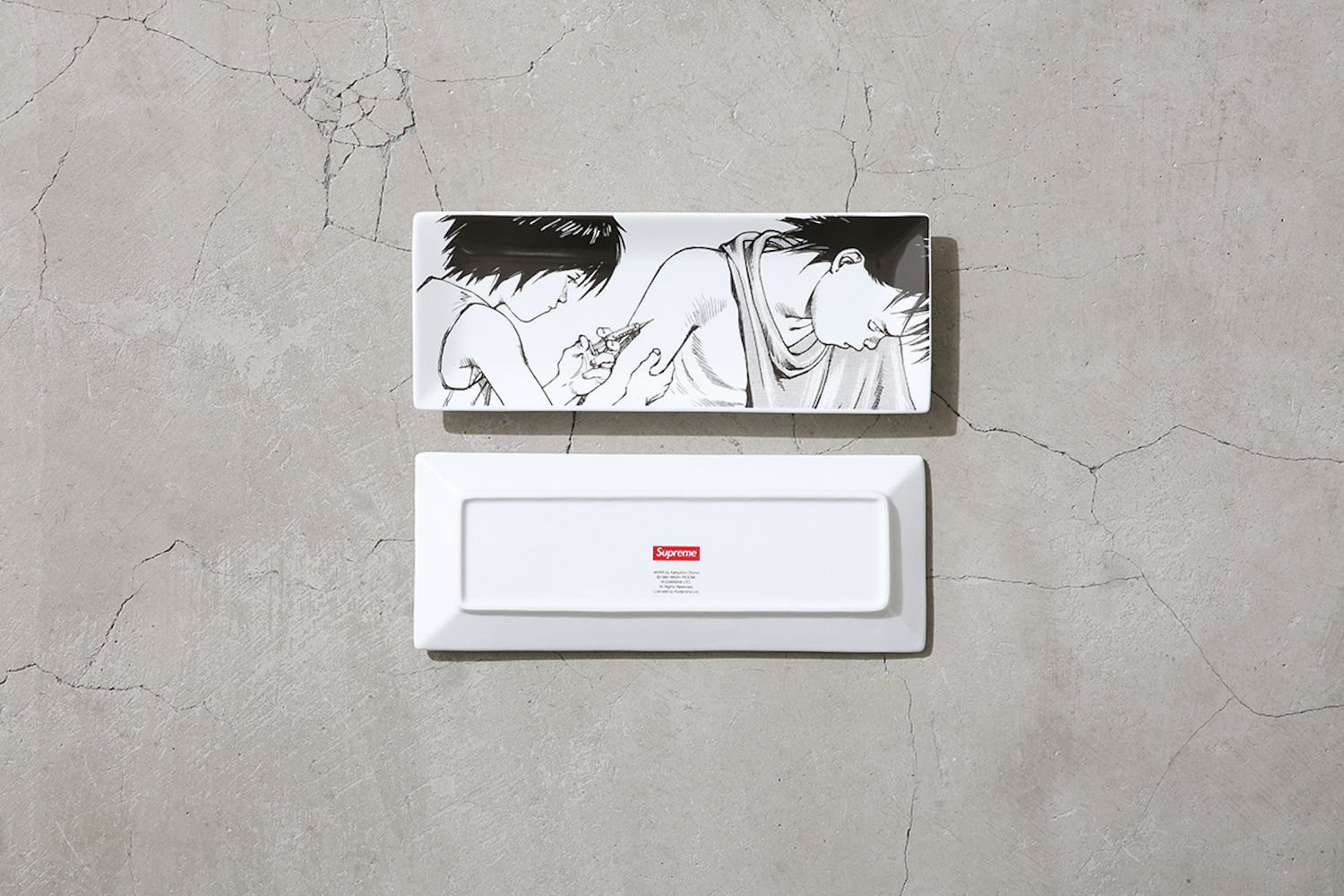 For this capsule FW17, Supreme works with Katsuhiro Otomo to reproduce the philosophy of the anime in his street world. The collection includes a Fishtail Parka, Work Jacket, Coveralls, Jacquard Long Sleeve Top, Soccer Top, two Hooded Sweatshirts, a Zip-Up Hooded Sweatshirt, four Short Sleeve T-Shirts, a Long Sleeve T-Shirt, a 5-Panel Hat, two Skateboard Decks, and a Ceramic Plate and Tray.