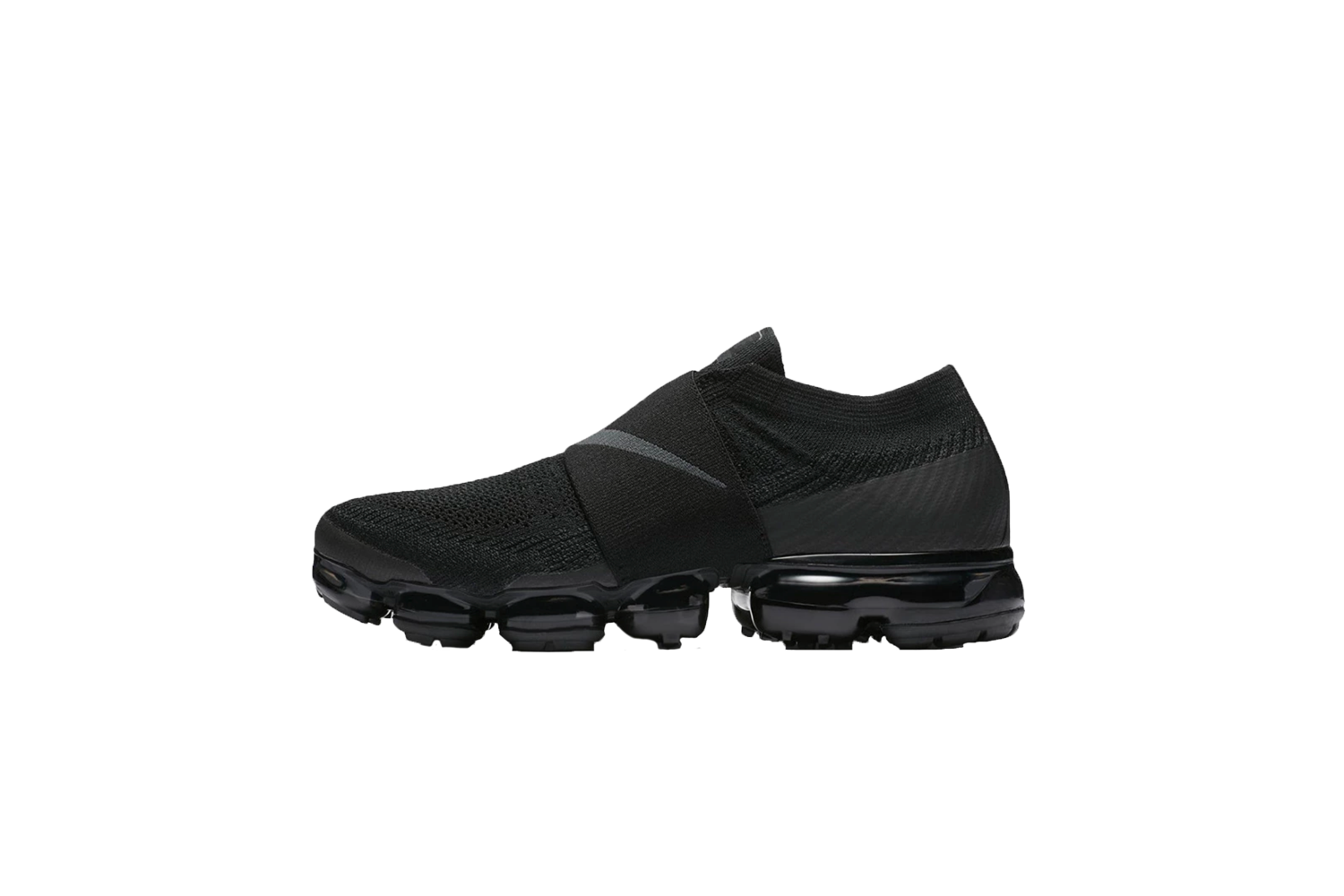 The young icon VaporMax puts aside the shoes laces. The new VaporMax Moc replaces the shoes laces with a Gore strap that wraps the sole of the foot. New total black color way drops- with the black/rainbow one- for the Black Friday on SNEAKRS app and at select Nike stores.
