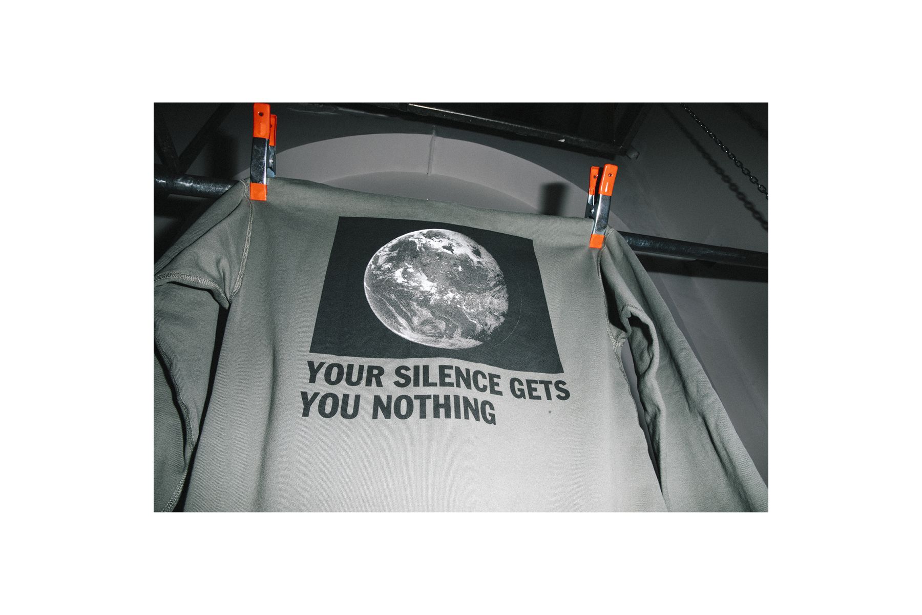 As far as I'm concerned, I like the idea of exploiting the opportunity to create something whose meaning goes beyond simple graphics, which means something more to people who wear it and for this capsule I liked the idea of offering something that was more reflective. The underlying concept of everything is that people should speak more openly about what they want, talk about what they think, what bothers them and what doesn't. Too many people live by chance, they do not get or experience what they truly want because of this and Your Silence Gets You Nothing means this: communicate!