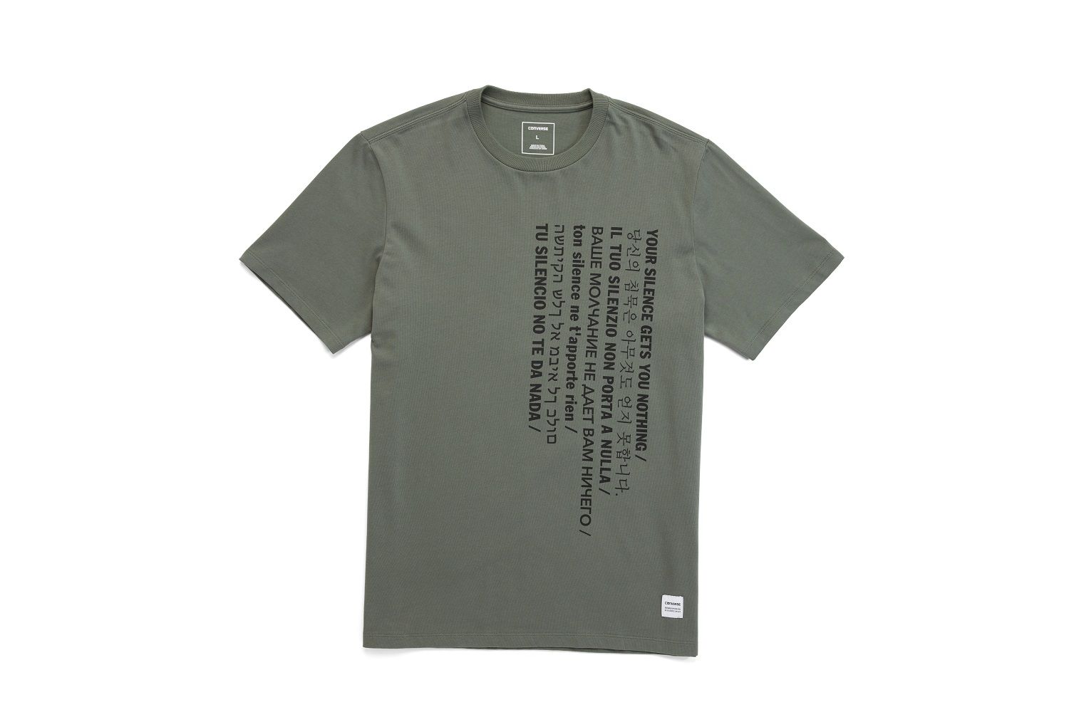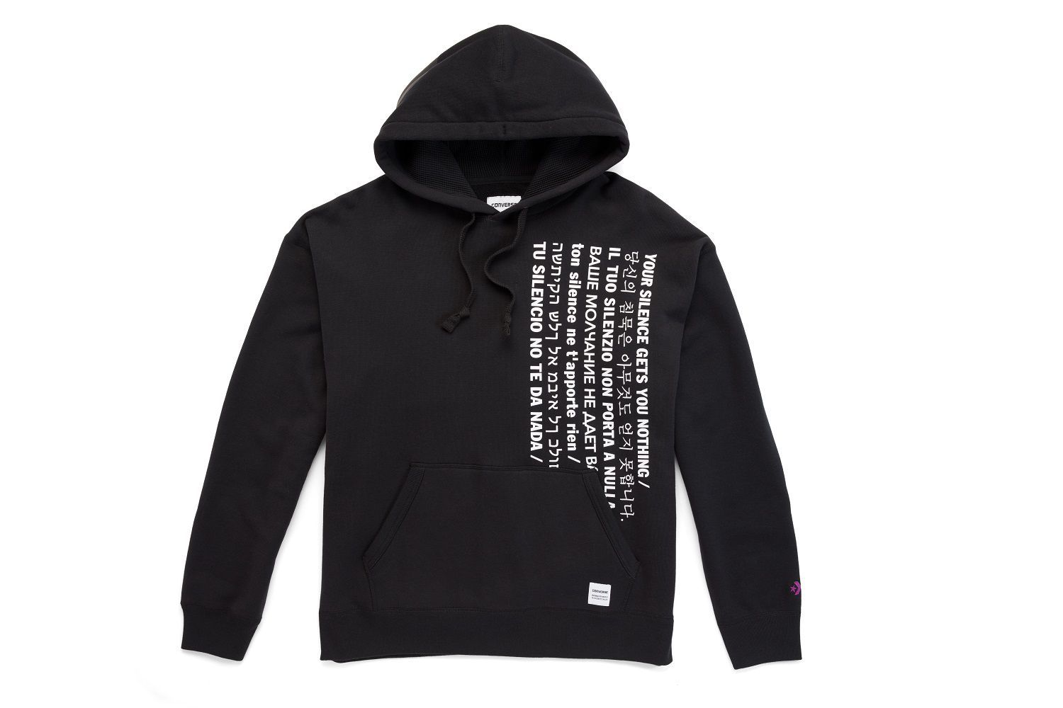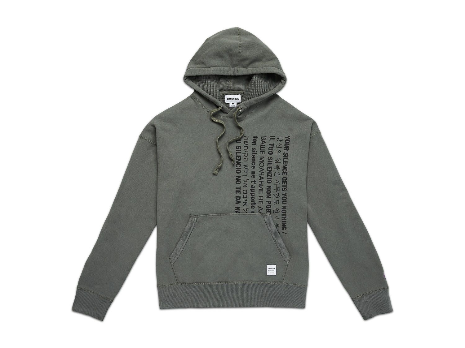 It's just from the Converse Urban Utility Collection that Your Silence Gets You Nothing borns: a cross-season capsule collection of seventeen items where the importance of freedom of expression meets fashion utilitarianism through the famous punk writings of Cali DeWitt, translated in English, Farsi, Italian, Korean, French, Russian and Hebrew, matched and almost in contrast to the aesthetics of the Urban Utility collection. The main purpose is to enhance the different levels of layering starting from classic Converse Essential jersey tees, thermic t-shirts, and hoodies, to the Men's GORE-TEX Utility Jacket - characterized by its three-layer waterproof nylon GORE-TEX breathable seam seams that provide protection to wearers. Key element is the iconic Converse Chuck '70.