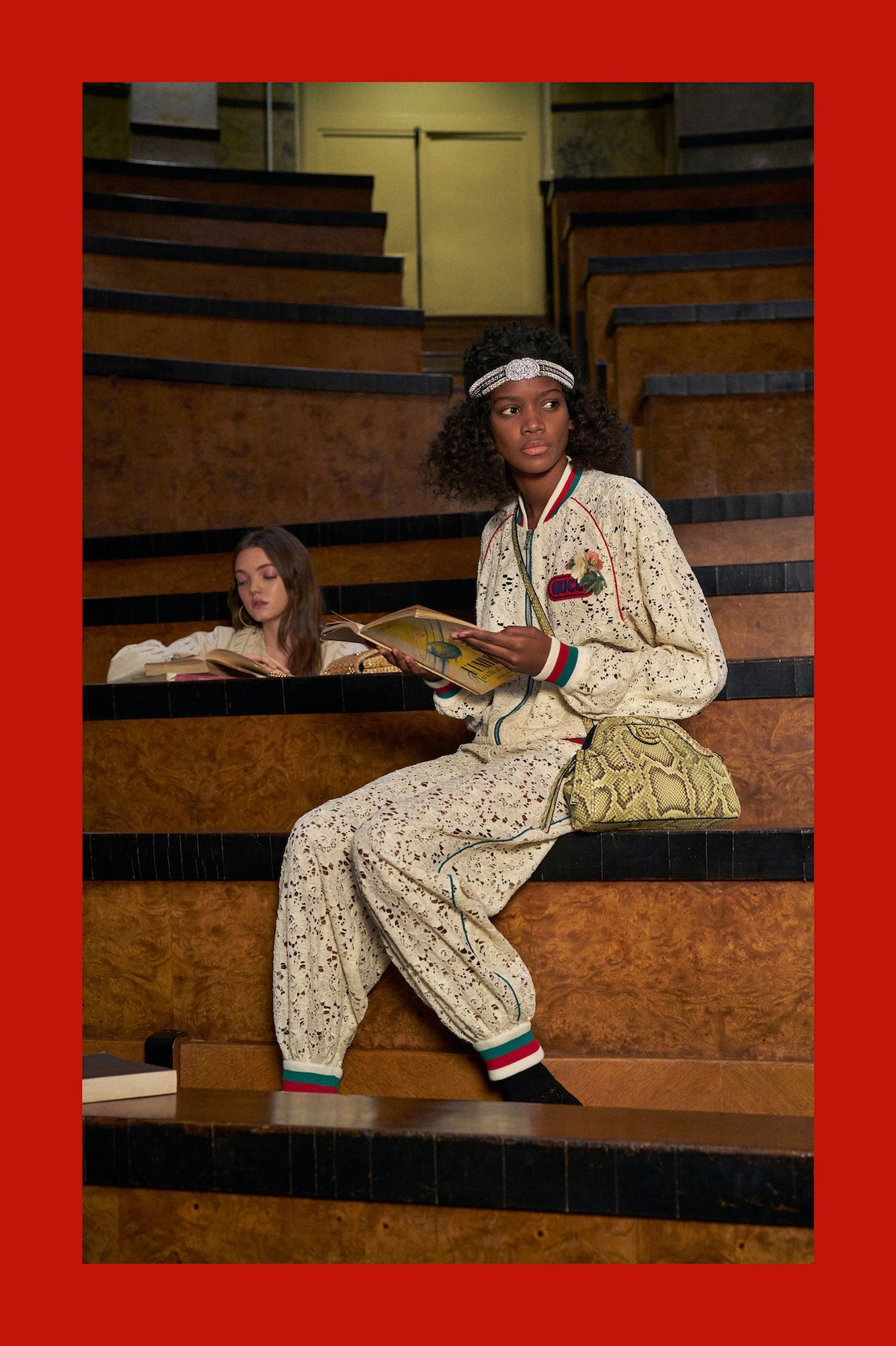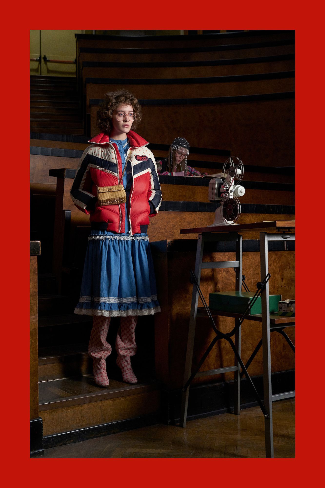 The geometric shapes adorn the suits, the Gucci motif is re-proposed on tights, cardigans, bags or boots, the men's blezers are once again more over than ever and made even more precious by mini details such as brooches, embroidery and prints . The tunics are worn on flared trousers, while the zig zag prints meet the sweet floral reproductions. Lace, but also sequins, elegance but also sporty.