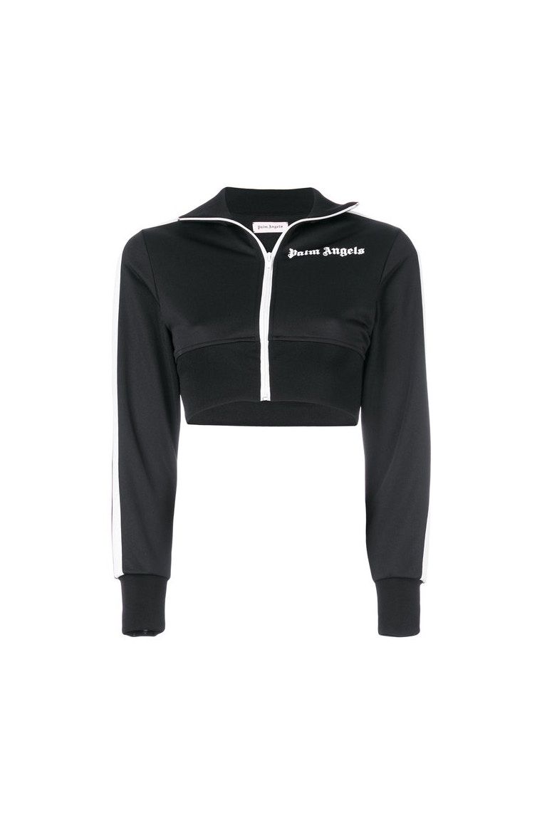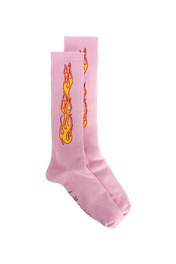 There are outerwear such as the zipped cropped jacket or vest, the hi-tech miniskirt or the flared pants, the t-shirt dress or the basic tee, but also the pink ribbed socks decorated with flames.