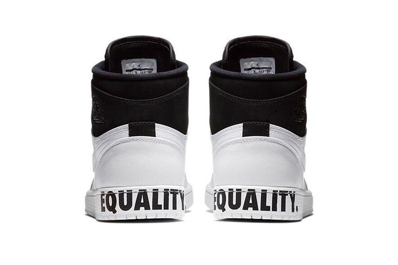 The second one, instead, has the midsole and the lower part of the upper in white, while the toe, heel, laces and tongue are in black. And the word "EQUALITY" on the heel.
