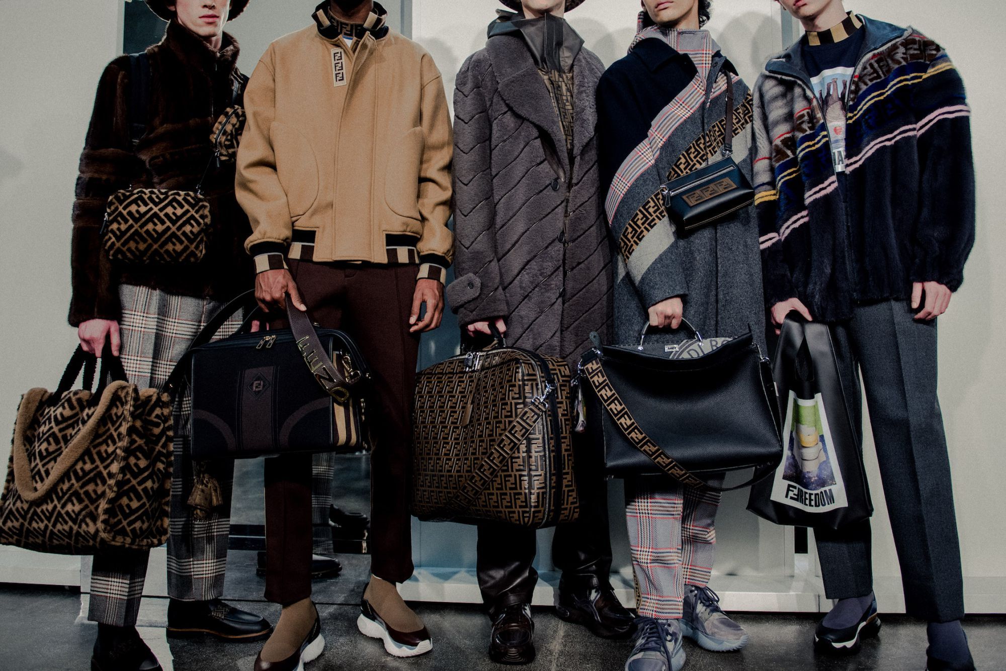 A hymn to luxury comfort, a tribute to travelwear, to the typical allover logo of the Maison, these few words are the Fendi Men's FW18 collection on the last day of Milan Men's Fashion Week.