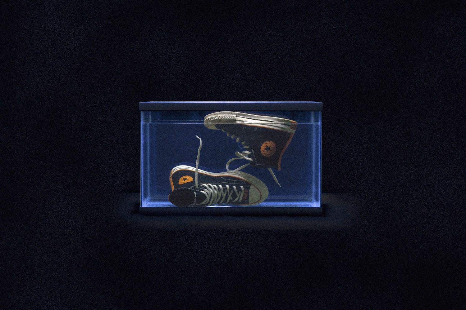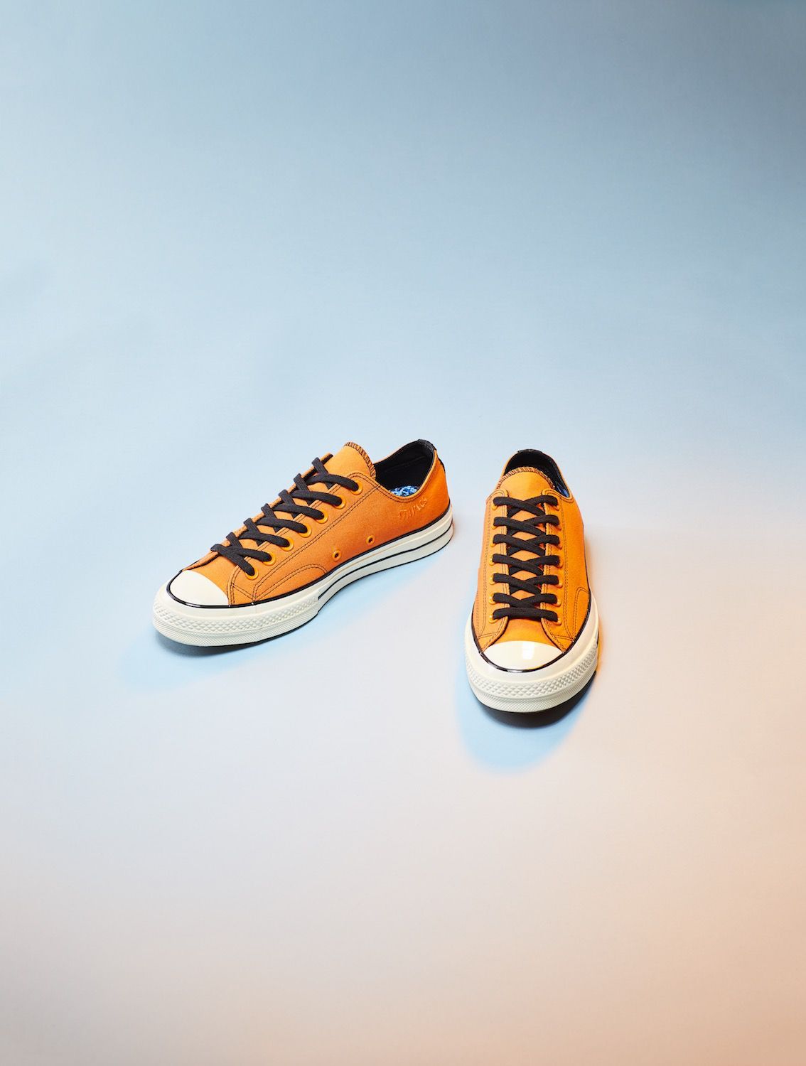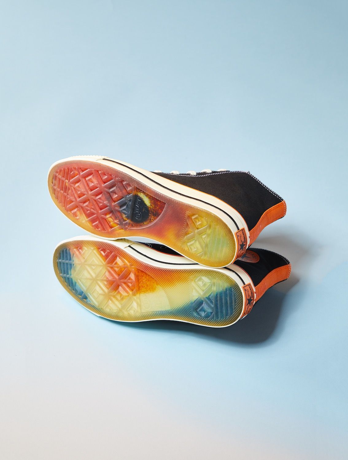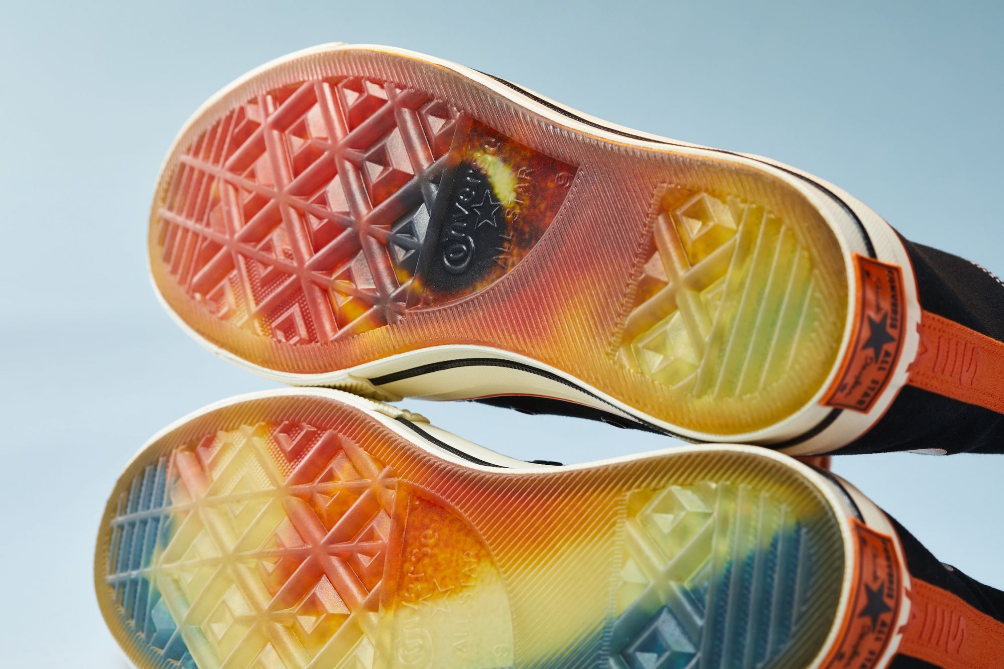 Key color of the Converse x Vince Staples capsule collection, orange dominates on both models, softening and contrasting the darker tones of the two silhouettes, while at the same time celebrating graphic art on the Big Fish ambiance. Another characteristic element of the sneaker capsule is the "SEA" graphics, present in 3D printing on the heel of Chuck 70 and widely present in the apparel line which includes the Converse Essentials sweatshirt and the 360 Legacy French Terry.