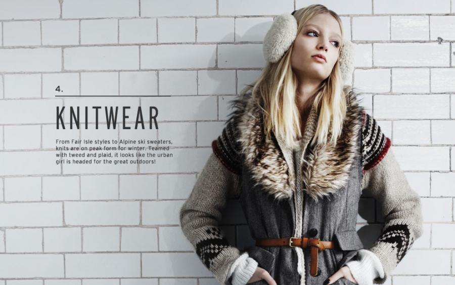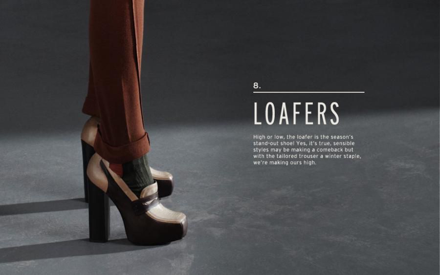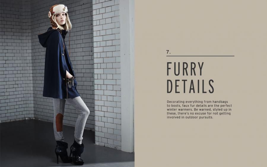 Topshop, dalle sue pagine virtuali, ci fa sapere poi che indosseremo maglioni di lana doppia, dettagli in pelle e sherling, leggins rubati agli atleti messi su con scarpe iper-zeppate e pronte a colpire per difenderci.