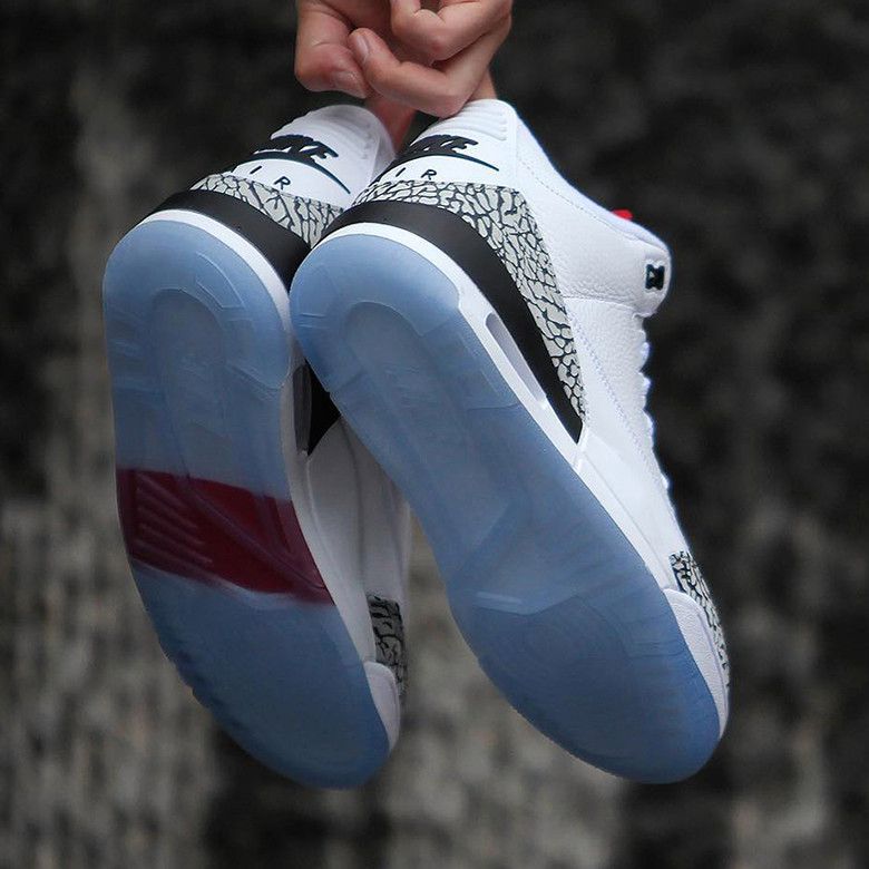To celebrate the 30th anniversary of the iconic Air Jordan III, the brand decided to recover the aesthetics of Jordan III “White Cement”, to pay tribute to Michael Jordan's decisive free throw during the 1988 Slam Dunk Contest. Thanks to the use of icy sole, the exact point where MJ jumped, scoring a spectacular shot is put in evidence through a red strip.