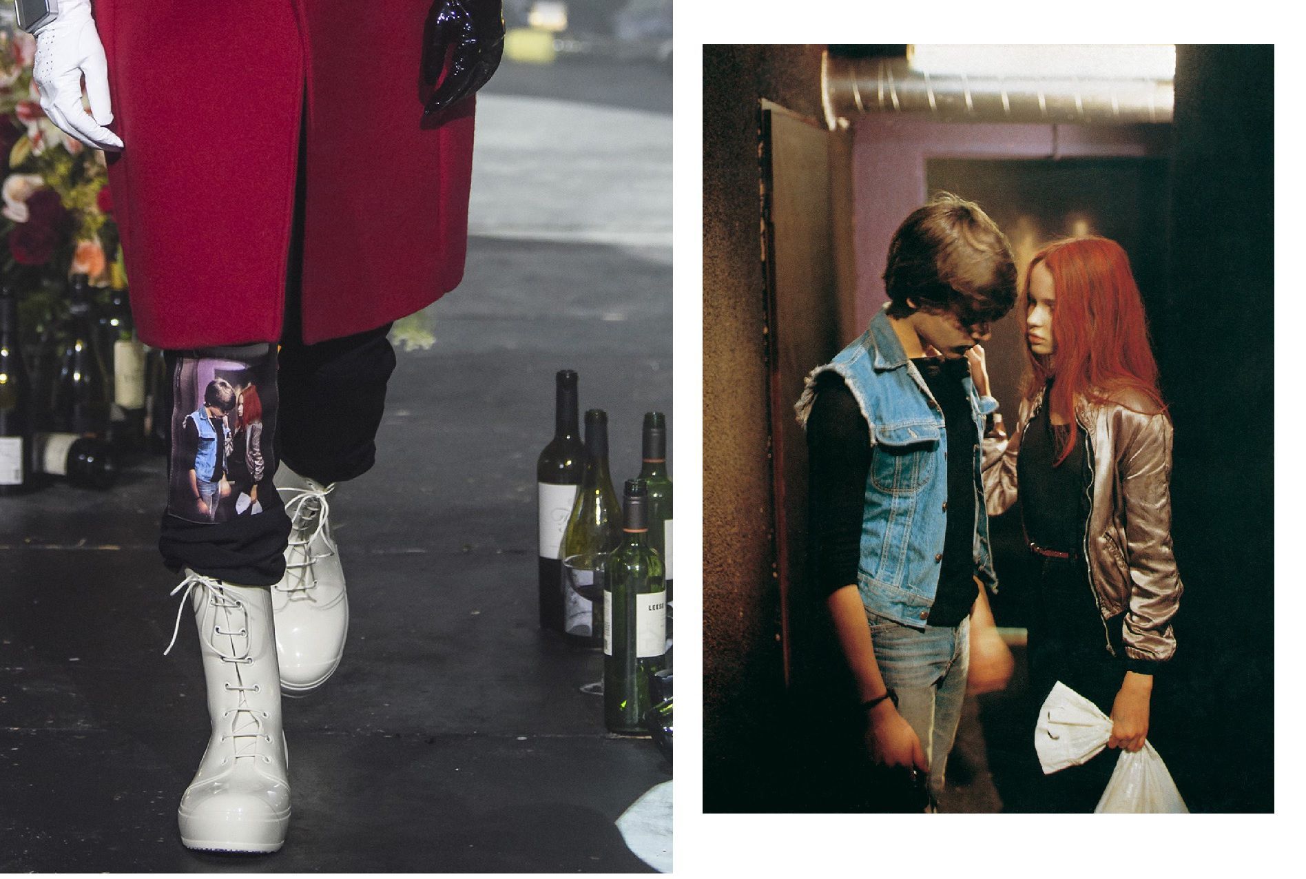 The faces, beautiful and fragile, of Natja Brunckhorst and Thomas Haustein aka Christiane and Detlef of the film and words written in bold like "LSD", "XTC", "GHB" and "2C-B", printed on clothes to open a window on the world, open wide through the reference to the book "DRUGS" by Cookie Mueller and Glenn O'Brien.