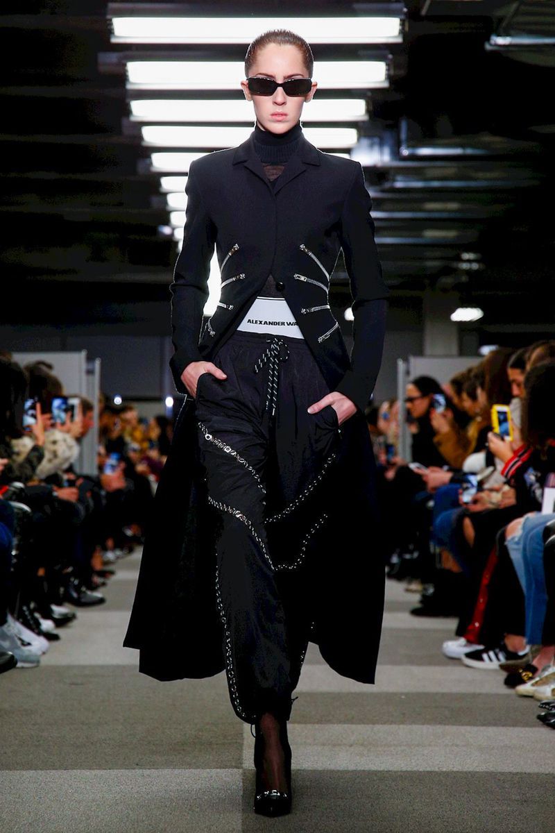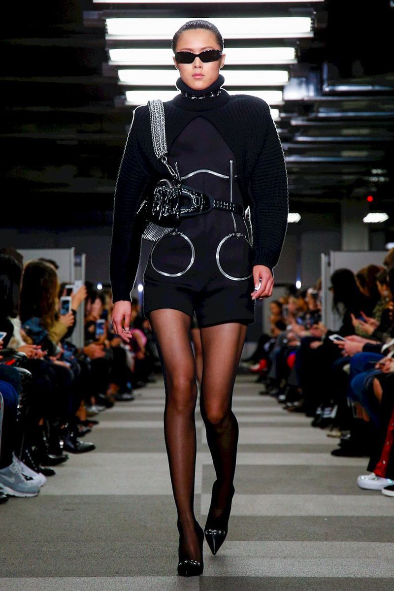 The woman Alexander Wang of the FW18 collection that crosses the New York catwalk loves black, but does not hide behind it, exalts it with touches of silver, fur and that sensual white décolleté.