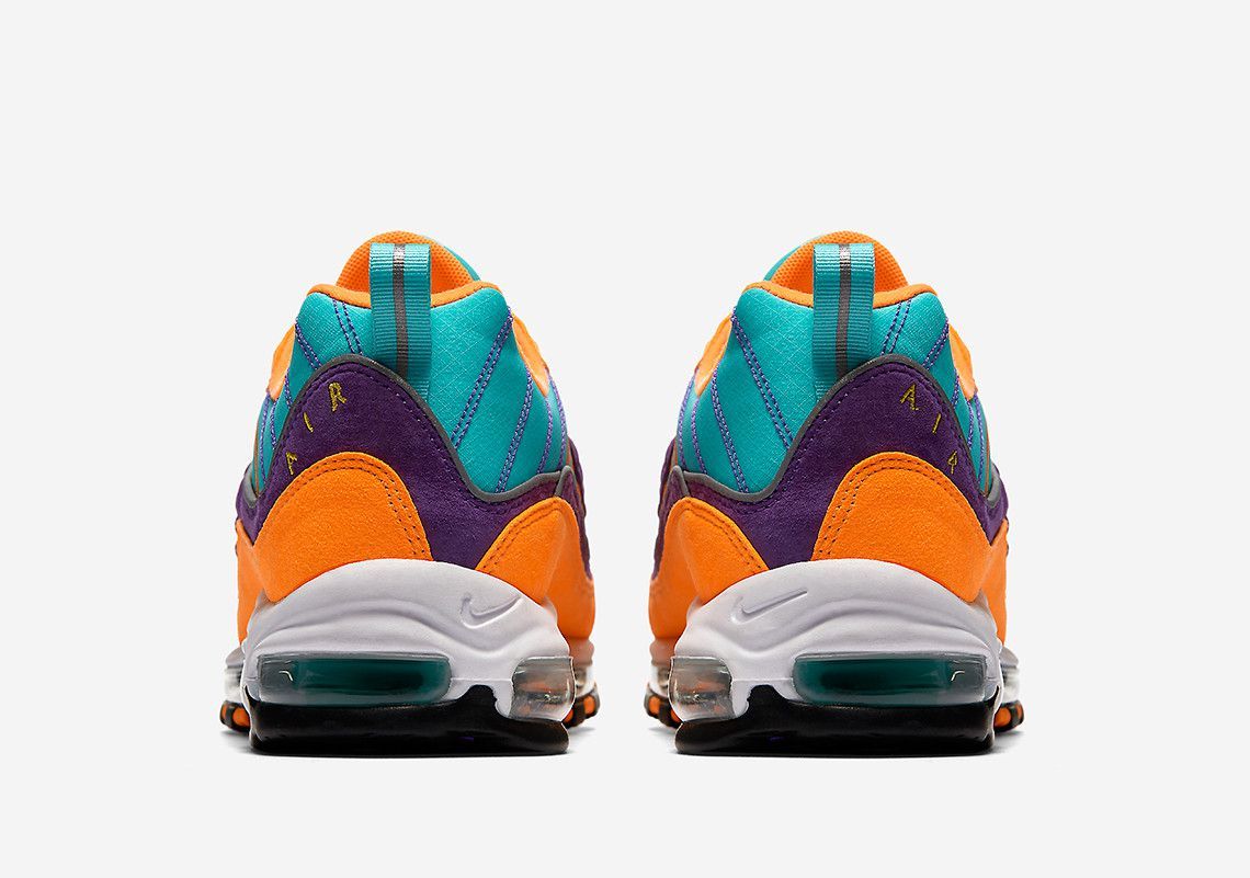 After the release of the more awaited Air Max 98 this year, the "Gundam", Nike is ready to drop a new colorway with a lot of bright colors, perfect for the spring/summer time. The color "Cono/Tour yellow/Hyper Grape" which is recognized as "Cone", comes in a variety of colors such as orange, blue, yellow and purple, with some details in suede and 3M.